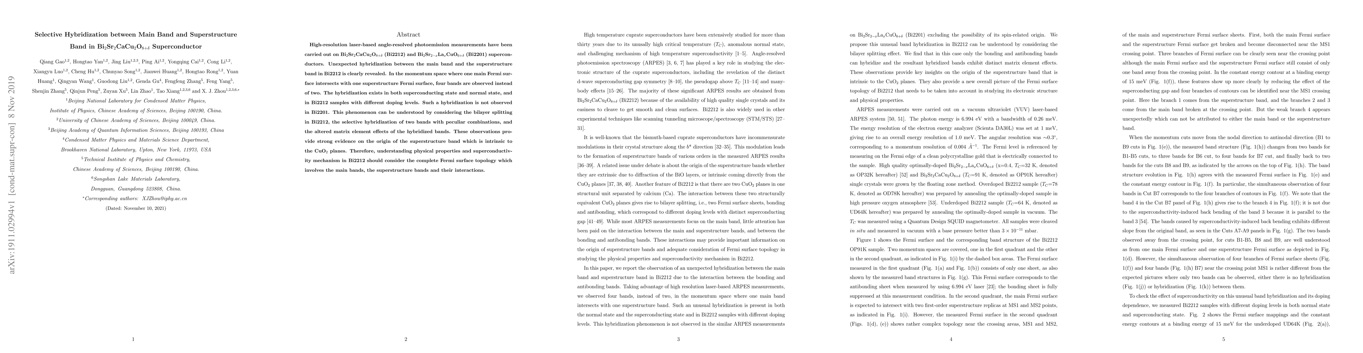 Researchers used laser-based angle-resolved photoemission to study Bi2212 superconductor, revealing unexpected hybridization between main band and superstructure band, which is observed in both superconducting and normal states, and has implications for understanding its superconductivity mechanism.