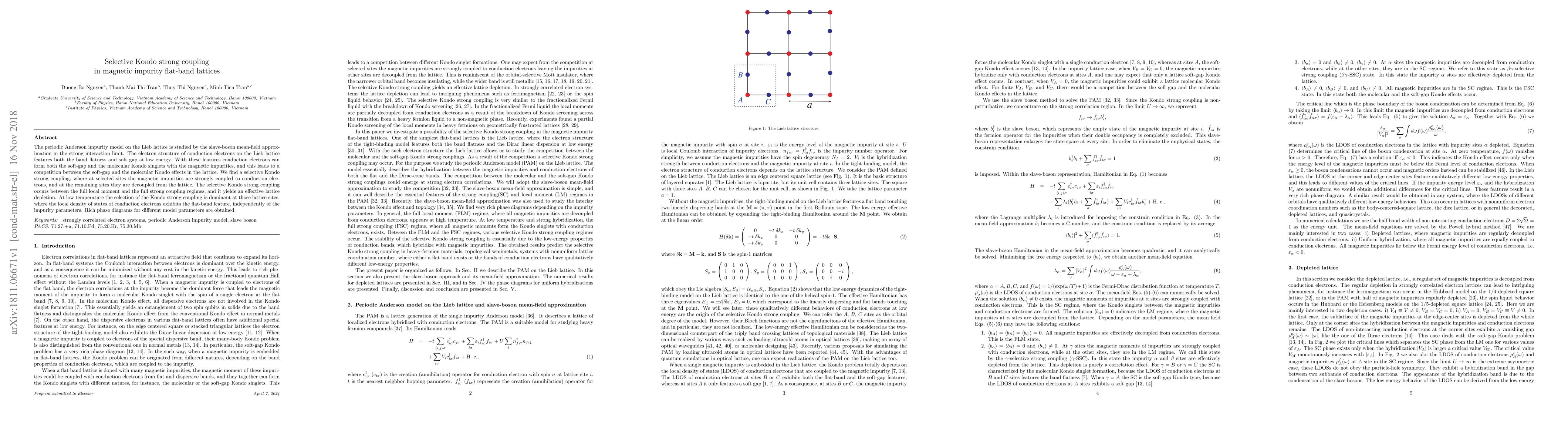 The periodic Anderson impurity model on the Lieb lattice is studied by the slave-boson mean-field approximation in the strong interaction limit. The electron structure of conduction electrons on the Lieb lattice features both the band flatness and soft gap at low energy. With these features conduction electrons can form both the soft-gap and the molecular Kondo singlets with the magnetic impurities, and this leads to a competition between the soft-gap and the molecular Kondo effects in the lattice. We find a selective Kondo strong coupling, where at selected sites the magnetic impurities are strongly coupled to conduction electrons, and at the remaining sites they are decoupled from the lattice. The selective Kondo strong coupling occurs between the full local moment and the full strong coupling regimes, and it yields an effective lattice depletion. At low temperature the selection of the Kondo strong coupling is dominant at those lattice sites, where the local density of states of conduction electrons exhibits the flat-band feature, independently of the impurity parameters. Rich phase diagrams for different model parameters are obtained.