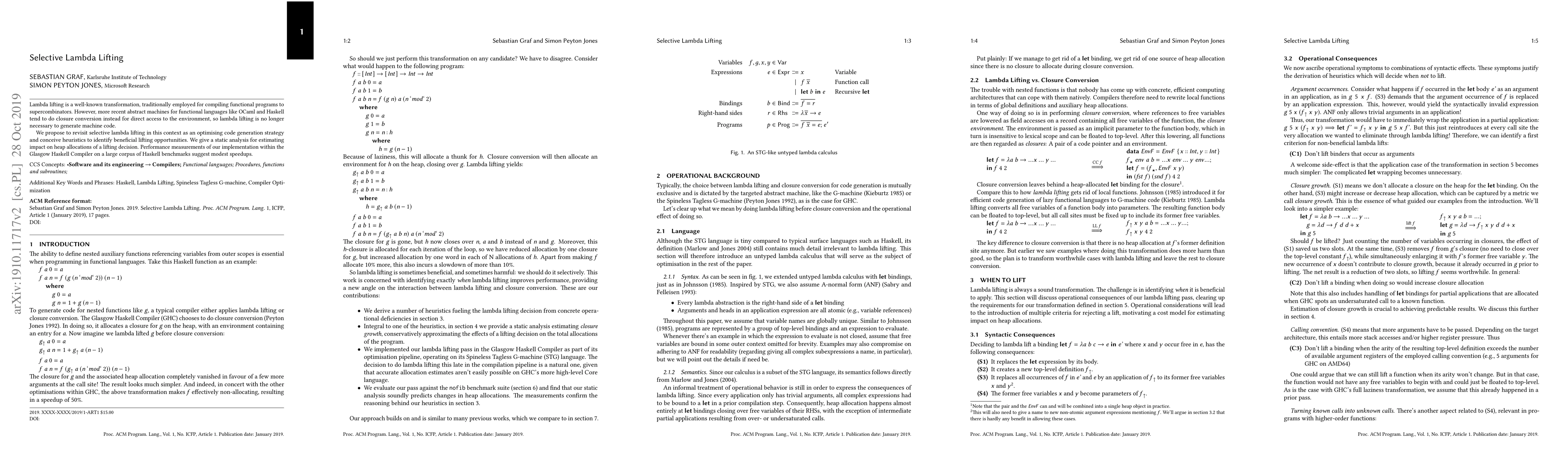 Researchers propose selective lambda lifting as an optimizing code generation strategy for functional languages, achieving modest speedups in performance measurements on a large corpus of Haskell benchmarks.