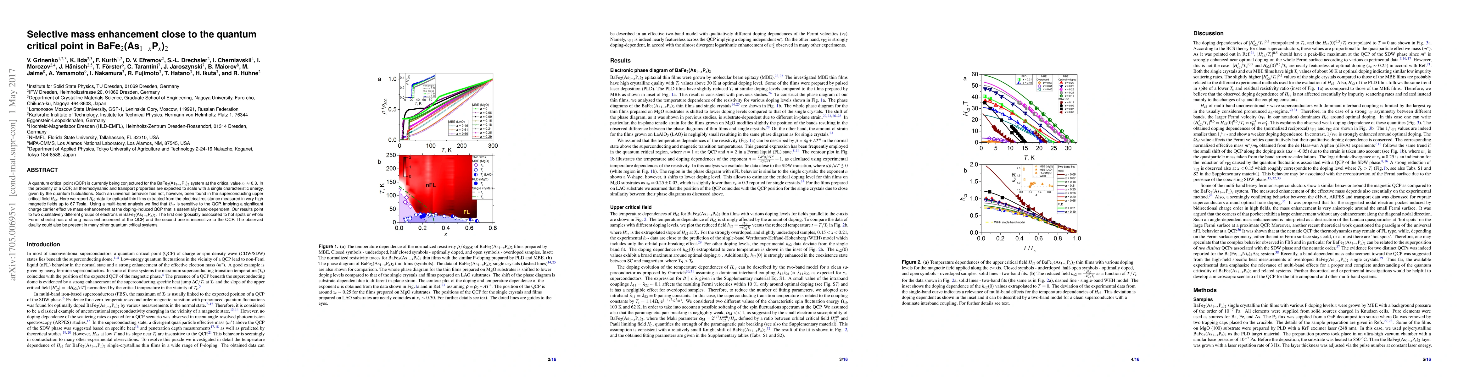 The study investigates BaFe2(As1-xPx)2, suggesting a quantum critical point (QCP) at x_c ≈ 0.3. Using high magnetic field data up to 67 Tesla, researchers find that the superconducting upper critical field Hc2 is sensitive to the QCP, indicating a band-dependent charge carrier effective mass enhancement. This reveals two distinct groups of electrons with varying responses to the QCP, hinting at duality in quantum critical systems.