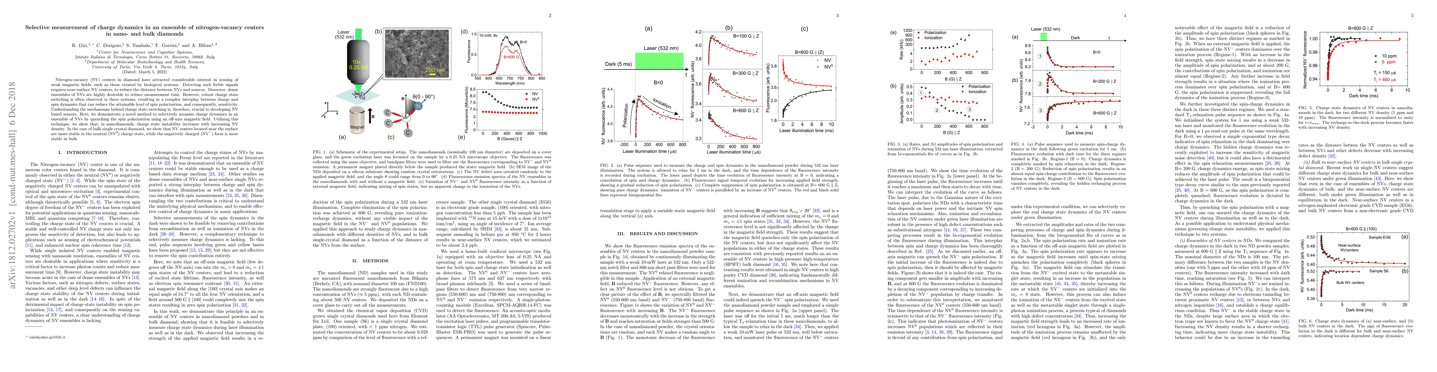 This paper presents a novel method to selectively measure charge dynamics in nitrogen-vacancy (NV) centers in diamond, demonstrating that charge state instability increases with NV density in nanodiamonds. It also shows that NV centers near the surface of bulk single crystal diamond are more stable in the neutral state, while the negatively charged form is more stable in bulk.