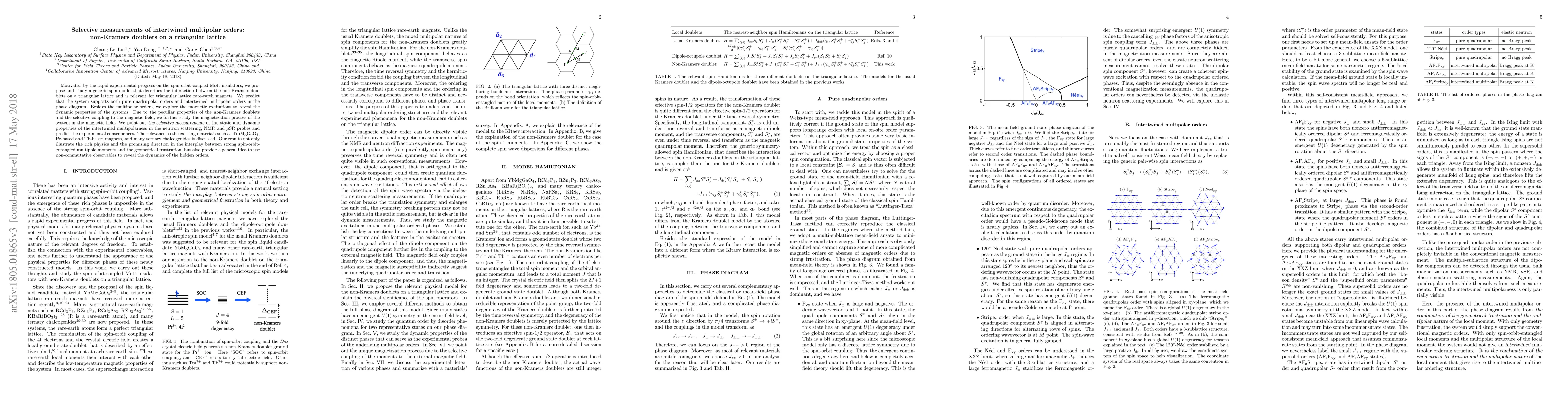 The paper introduces a comprehensive spin model and analysis for non-Kramers doublets on a triangular lattice, predicting novel multipolar orders and their dynamic behavior.