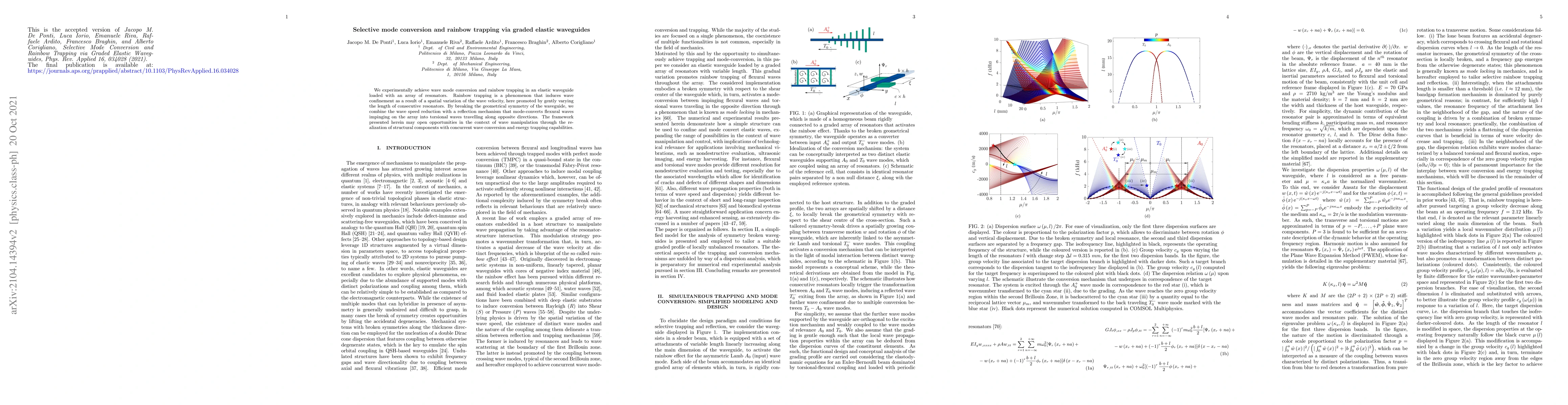 This paper demonstrates experimental wave mode conversion and rainbow trapping in elastic waveguides with an array of resonators. By varying resonator lengths and breaking waveguide symmetry, flexural waves are converted into torsional waves, enabling wave confinement and energy trapping, potentially advancing wave manipulation technologies.
