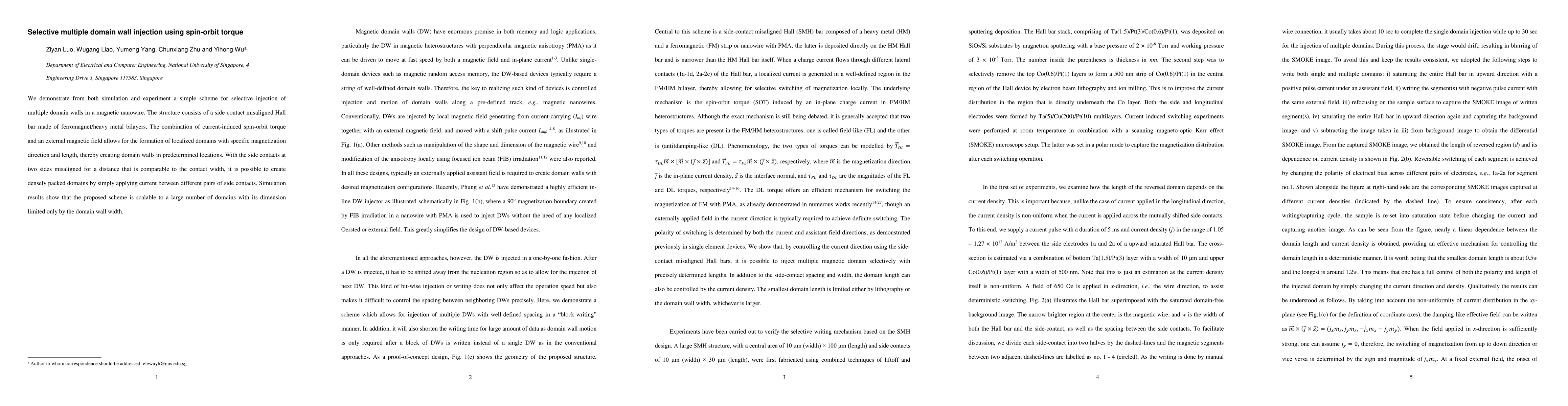 We demonstrate from both simulation and experiment a simple scheme for selective injection of multiple domain walls in a magnetic nanowire. The structure consists of a side-contact misaligned Hall bar made of ferromagnet/heavy metal bilayers. The combination of current-induced spin-orbit torque and an external magnetic field allows for the formation of localized domains with specific magnetization direction and length, thereby creating domain walls in predetermined locations. With the side contacts at two sides misaligned for a distance that is comparable to the contact width, it is possible to create densely packed domains by simply applying current between different pairs of side contacts. Simulation results show that the proposed scheme is scalable to a large number of domains with its dimension limited only by the domain wall width.
