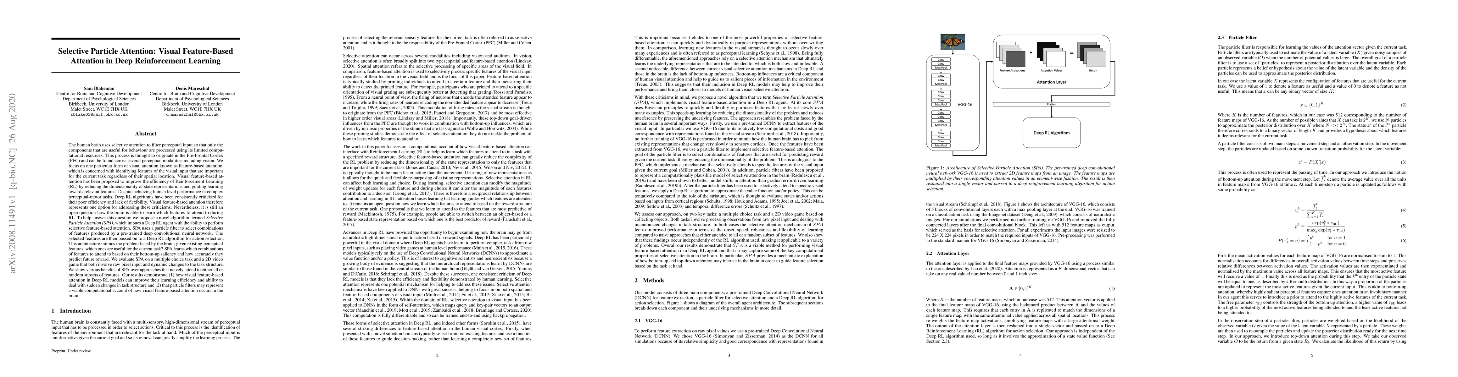 This paper proposes Selective Particle Attention (SPA), a novel algorithm that enables Deep Reinforcement Learning (RL) agents to perform visual feature-based attention, improving learning efficiency and adaptability. SPA identifies important features based on saliency and predictive accuracy, demonstrating benefits over non-selective attention methods in tasks with dynamic changes.