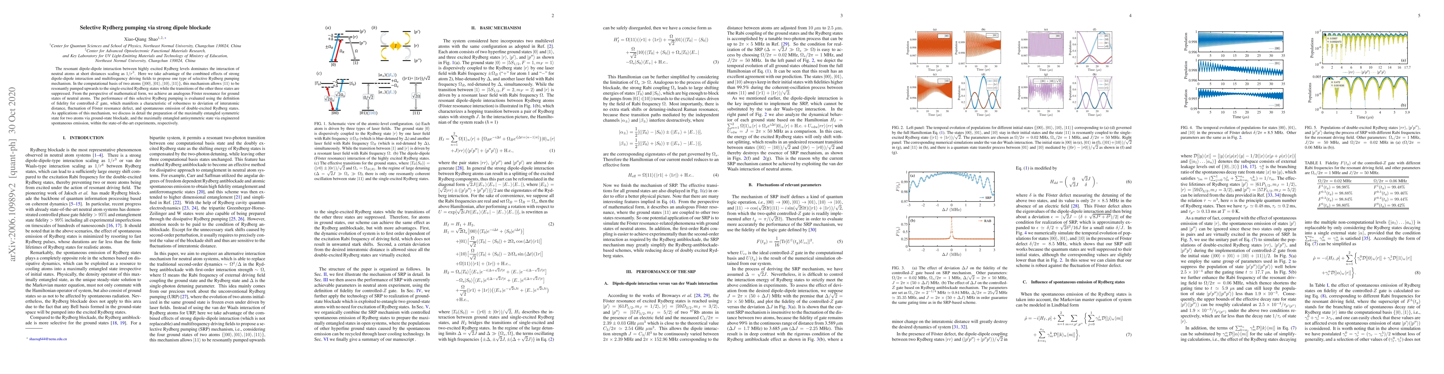 The resonant dipole-dipole interaction between highly excited Rydberg levels dominates the interaction of neutral atoms at short distances scaling as $1/r^3$. Here we take advantage of the combined effects of strong dipole-dipole interaction and multifrequency driving fields to propose one type of selective Rydberg pumping mechanism. In the computational basis of two atoms $\{|00\rangle, |01\rangle,|10\rangle,|11\rangle\}$, this mechanism allows $|11\rangle$ to be resonantly pumped upwards to the single-excited Rydberg states while the transitions of the other three states are suppressed. From the perspective of mathematical form, we achieve an analogous F\"{o}ster resonance for ground states of neutral atoms. The performance of this selective Rydberg pumping is evaluated using the definition of fidelity for controlled-$Z$ gate, which manifests a characteristic of robustness to deviation of interatomic distance, fluctuation of F\"{o}ster resonance defect, and spontaneous emission of double-excited Rydberg states. As applications of this mechanism, we discuss in detail the preparation of the maximally entangled symmetric state for two atoms via ground-state blockade, and the maximally entangled antisymmetric state via engineered spontaneous emission, within the state-of-the-art experiments, respectively.