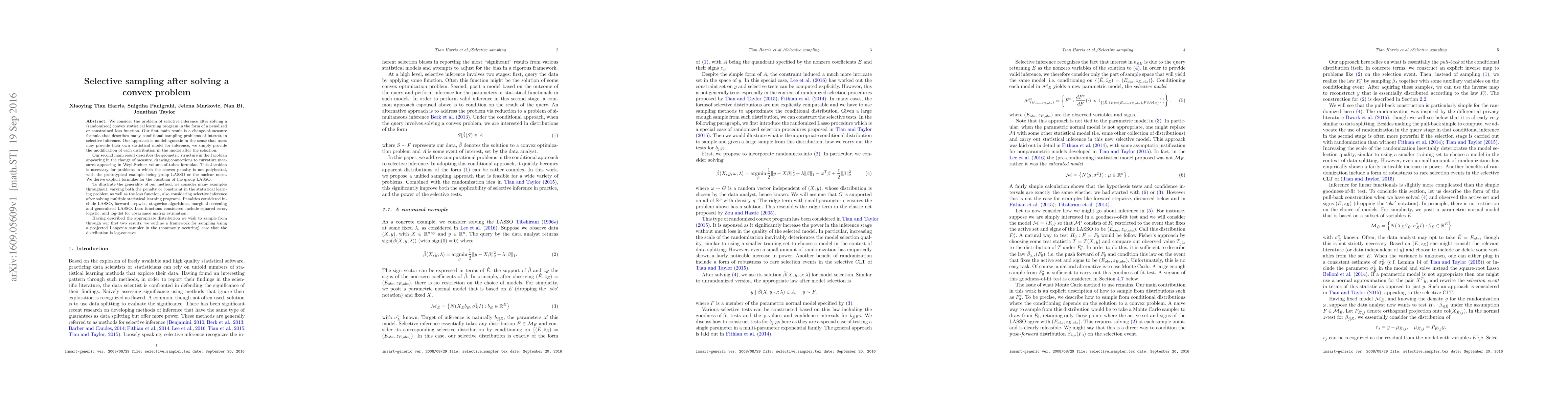 Researchers develop a method for selective inference after solving convex statistical learning problems, providing a change-of-measure formula and a framework for sampling from the resulting distribution using a projected Langevin sampler.