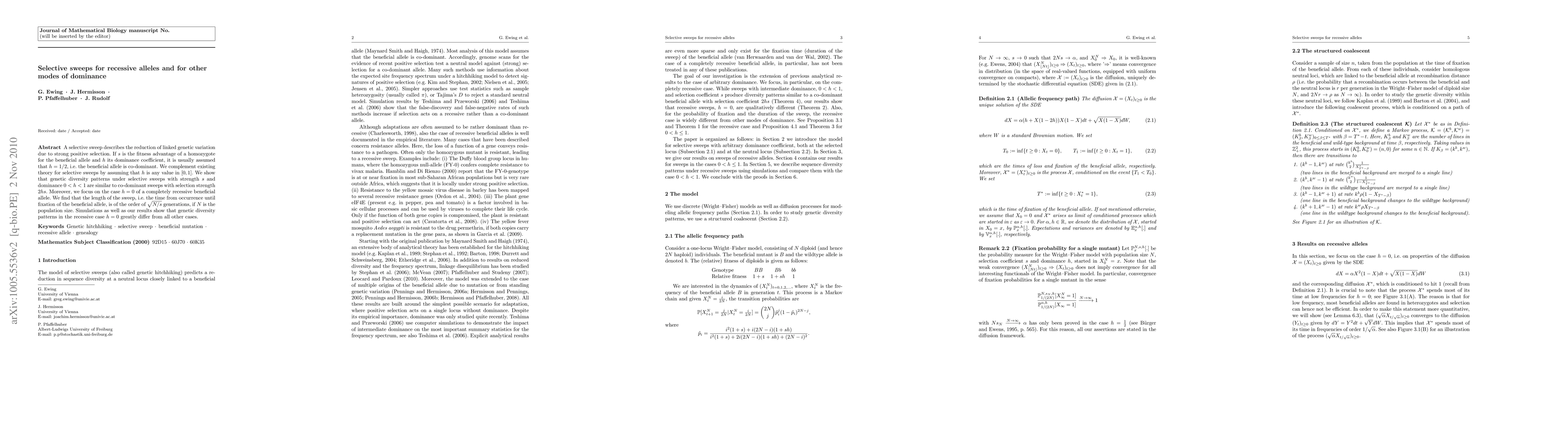 theory for selective sweeps by assuming that h is any value in [0,1]. We show