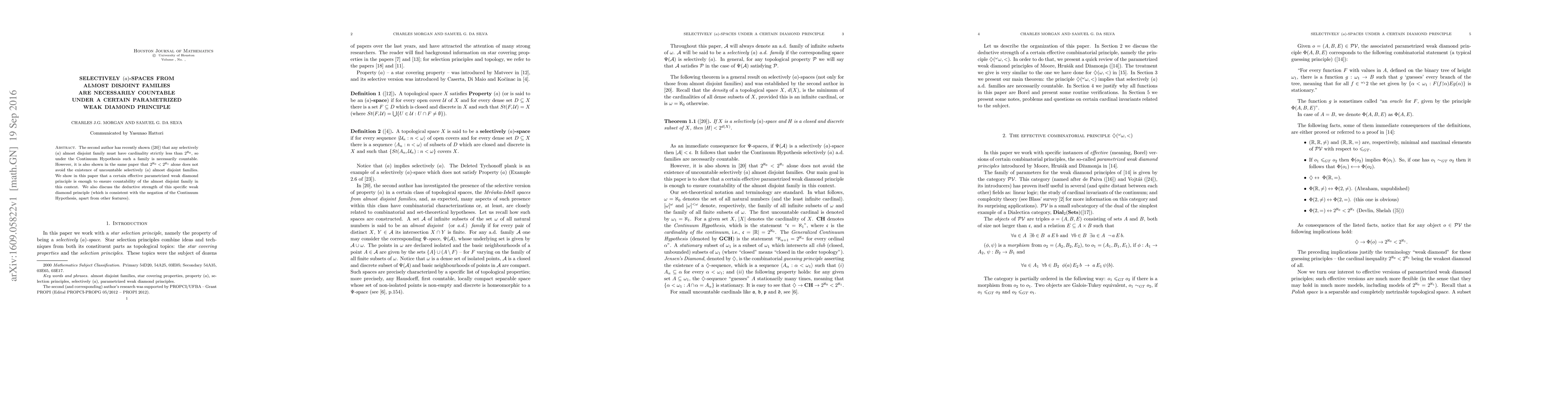 The second author has recently shown ([20]) that any selectively (a) almost disjoint family must have cardinality strictly less than $2^{\alpeh_0}$, so under the Continuum Hypothesis such a family is necessarily countable. However, it is also shown in the same paper that $2^{\alpeh_0} < 2^{\alpeh_1}$ alone does not avoid the existence of uncountable selectively (a) almost disjoint families. We show in this paper that a certain effective parametrized weak diamond principle is enough to ensure countability of the almost disjoint family in this context. We also discuss the deductive strength of this specific weak diamond principle (which is consistent with the negation of the Continuum Hypothesis, apart from other features).