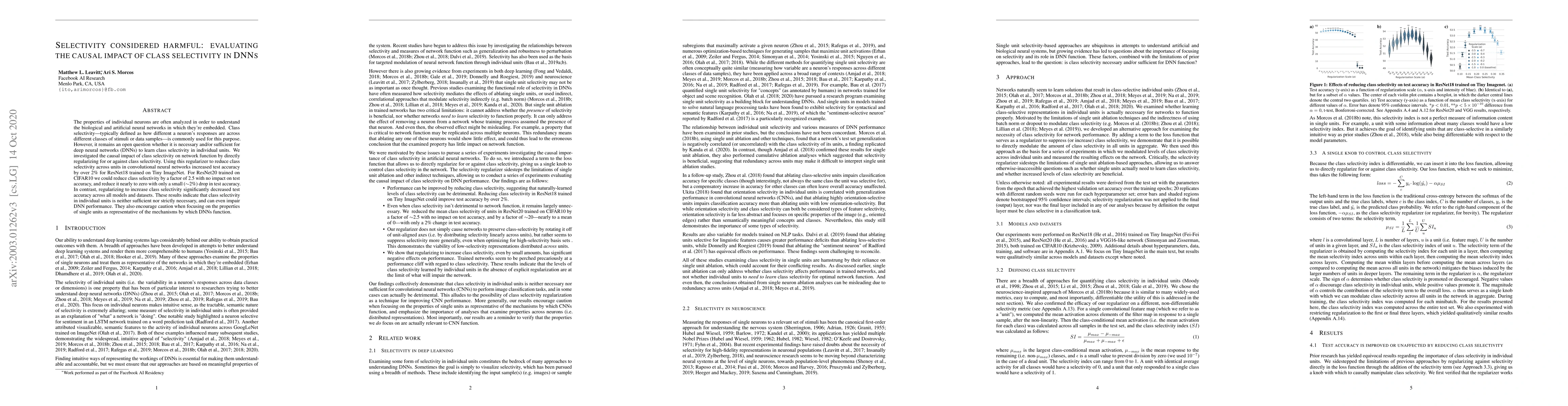 This paper investigates the causal impact of class selectivity in deep neural networks (DNNs) and finds that reducing class selectivity can improve test accuracy, while increasing it impairs performance. The study suggests that class selectivity is neither necessary nor sufficient for optimal DNN function.