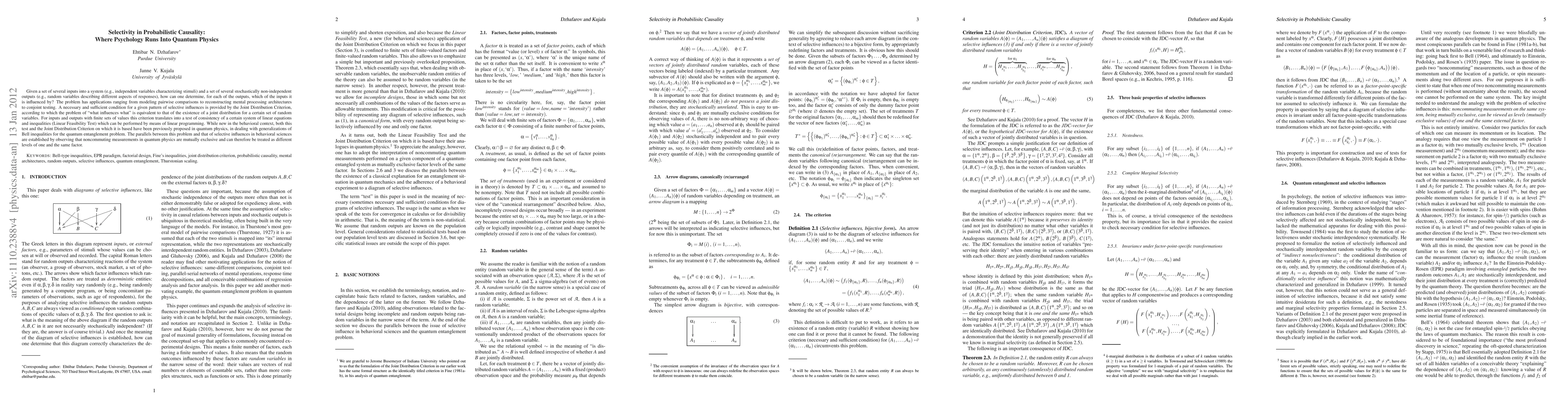 Given a set of several inputs into a system (e.g., independent variables characterizing stimuli) and a set of several stochastically non-independent outputs (e.g., random variables describing different aspects of responses), how can one determine, for each of the outputs, which of the inputs it is influenced by? The problem has applications ranging from modeling pairwise comparisons to reconstructing mental processing architectures to conjoint testing. A necessary and sufficient condition for a given pattern of selective influences is provided by the Joint Distribution Criterion, according to which the problem of "what influences what" is equivalent to that of the existence of a joint distribution for a certain set of random variables. For inputs and outputs with finite sets of values this criterion translates into a test of consistency of a certain system of linear equations and inequalities (Linear Feasibility Test) which can be performed by means of linear programming. While new in the behavioral context, both this test and the Joint Distribution Criterion on which it is based have been previously proposed in quantum physics, in dealing with generalizations of Bell inequalities for the quantum entanglement problem. The parallels between this problem and that of selective influences in behavioral sciences is established by observing that noncommuting measurements in quantum physics are mutually exclusive and can therefore be treated as different levels of one and the same factor.