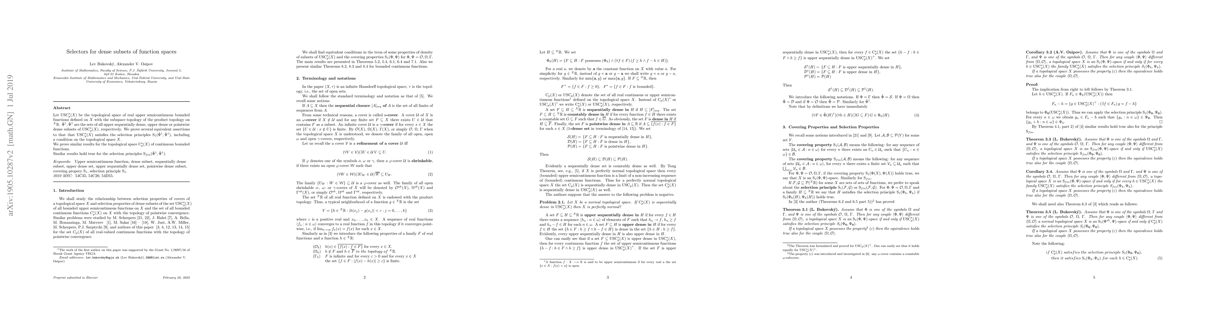 Let $USC^*_p(X)$ be the topological space of real upper semicontinuous bounded functions defined on $X$ with the subspace topology of the product topology on ${}^X\mathbb{R}$. $\tilde\Phi^{\uparrow},\tilde\Psi^{\uparrow}$ are the sets of all upper sequentially dense, upper dense or pointwise dense subsets of $USC^*_p(X)$, respectively. We prove several equivalent assertions to the assertion $USC^*_p(X)$ satisfies the selection principles $S_1(\tilde\Phi^{\uparrow},\tilde\Psi^{\uparrow})$, including a condition on the topological space $X$. We prove similar results for the topological space $C^*_p(X)$ of continuous bounded functions. Similar results hold true for the selection principles $S_{fin}(\tilde\Phi^{\uparrow},\tilde\Psi^{\uparrow})$.