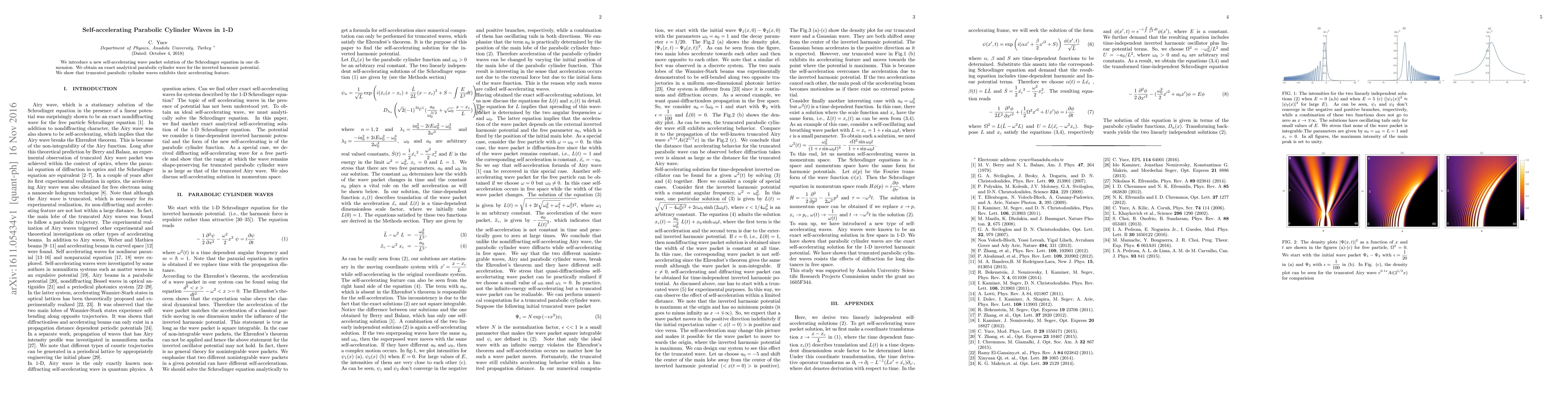 We introduce a new self-accelerating wave packet solution of the Schrodinger equation in one dimension. We obtain an exact analytical parabolic cylinder wave for the inverted harmonic potential. We show that truncated parabolic cylinder waves exhibits their accelerating feature.