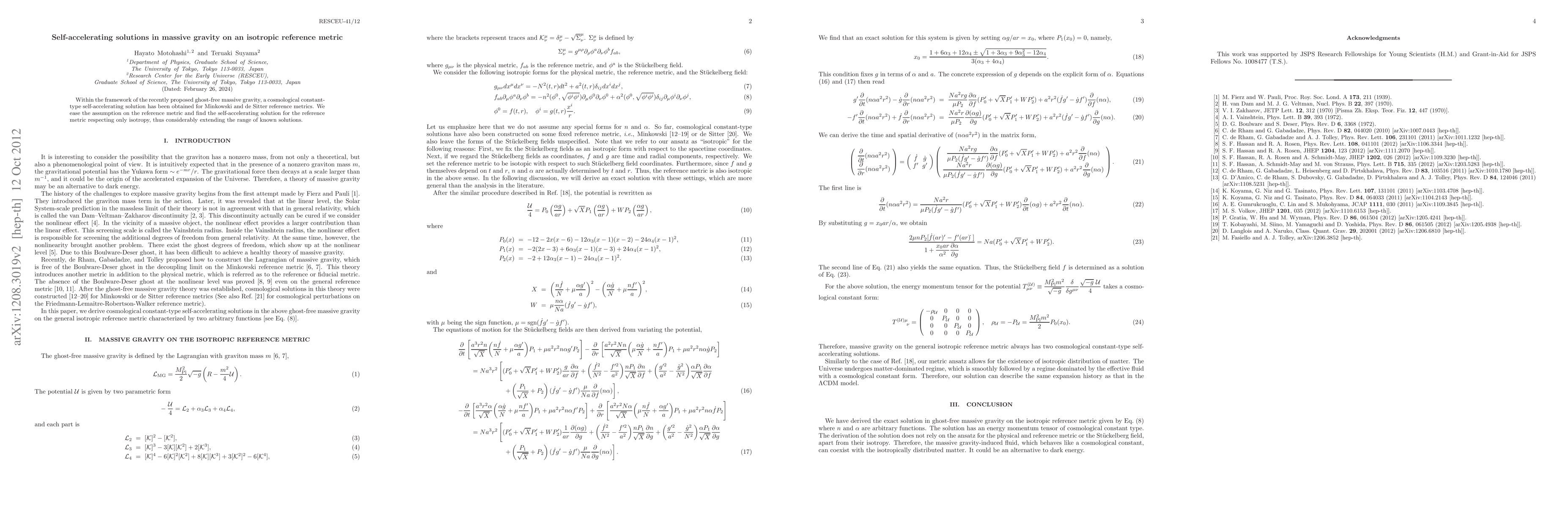 This paper explores self-accelerating solutions in ghost-free massive gravity, extending the analysis beyond Minkowski and de Sitter metrics to include isotropic reference metrics. This extension broadens the scope of known cosmological solutions.