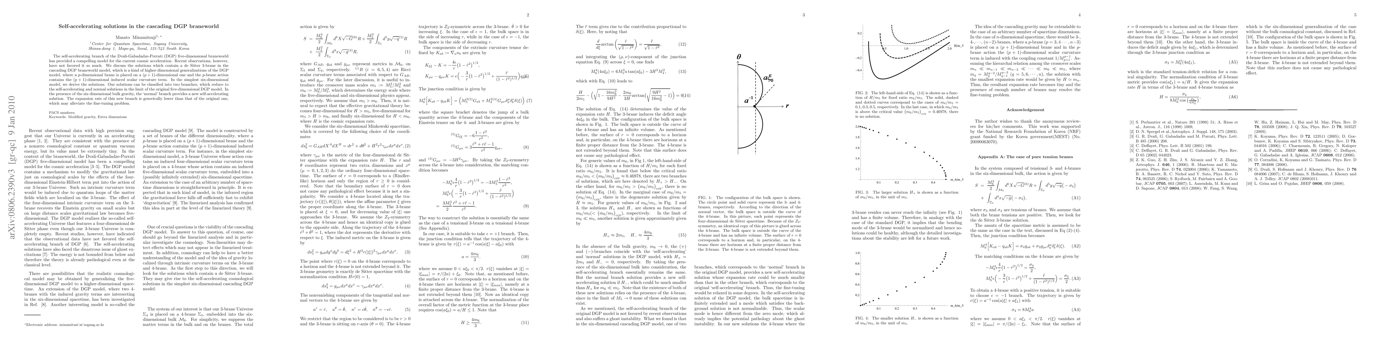This paper explores self-accelerating solutions in a higher-dimensional generalization of the DGP braneworld model, finding a new branch that provides a self-accelerating solution with a lower expansion rate, potentially alleviating the fine-tuning problem.