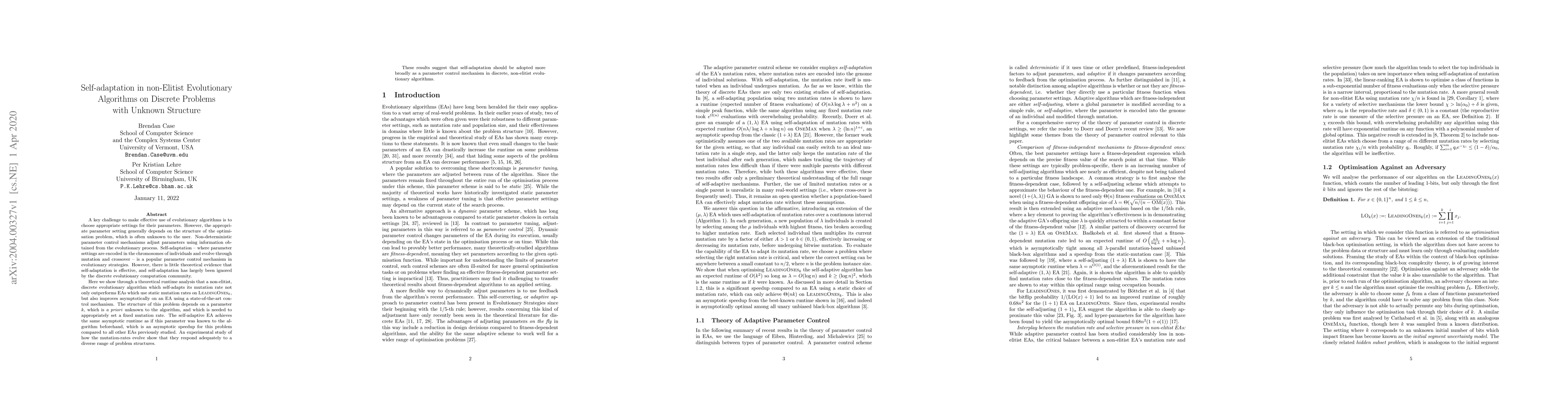 This paper demonstrates that a non-elitist evolutionary algorithm with self-adaptive mutation rates outperforms those with static mutation rates and other control mechanisms on discrete optimization problems with unknown structure. Theoretical analysis shows that self-adaptation achieves optimal asymptotic runtime even without prior knowledge of the problem's structure parameter.
