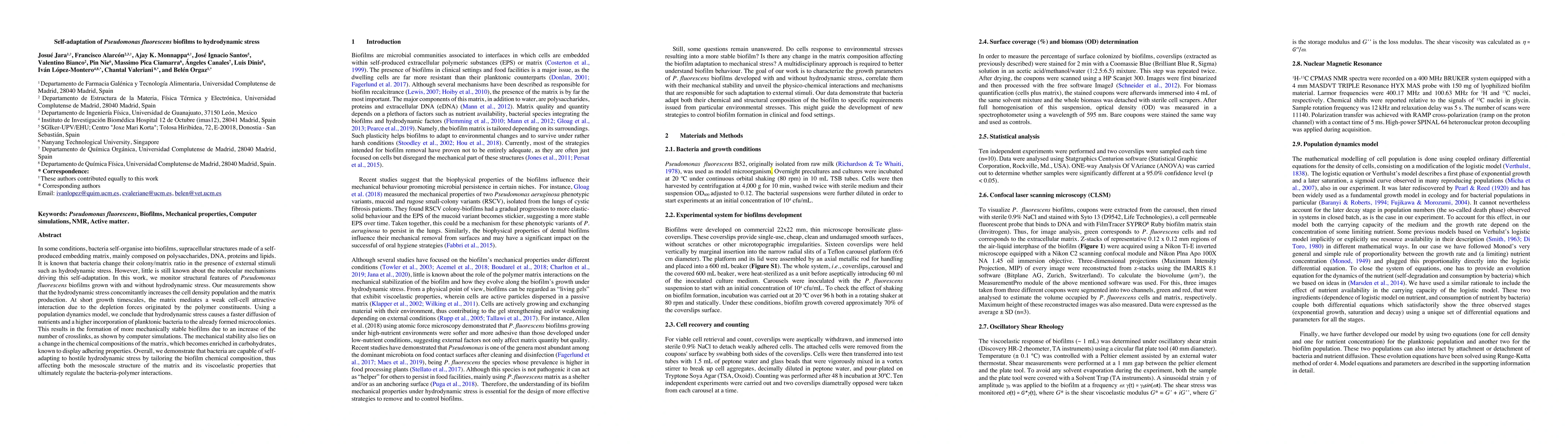 This study investigates how Pseudomonas fluorescens biofilms adapt to hydrodynamic stress, revealing that stress increases cell density and matrix production. The enhanced matrix leads to stronger cell-cell interactions and more stable biofilms due to increased nutrient diffusion and crosslink formation, ultimately altering the biofilm's chemical composition to improve mechanical stability.