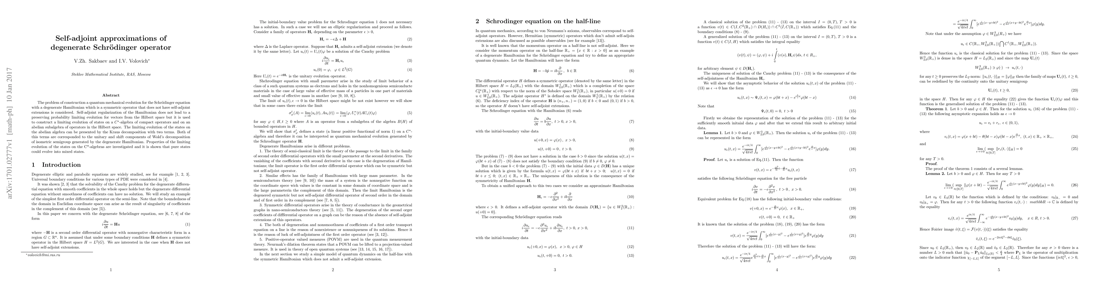 This paper explores the construction of a quantum evolution for a degenerate Schrödinger operator that lacks self-adjoint extensions. It constructs a limiting evolution for states on C*-algebras and abelian subalgebras, revealing that pure states can evolve into mixed states through the Kraus decomposition.