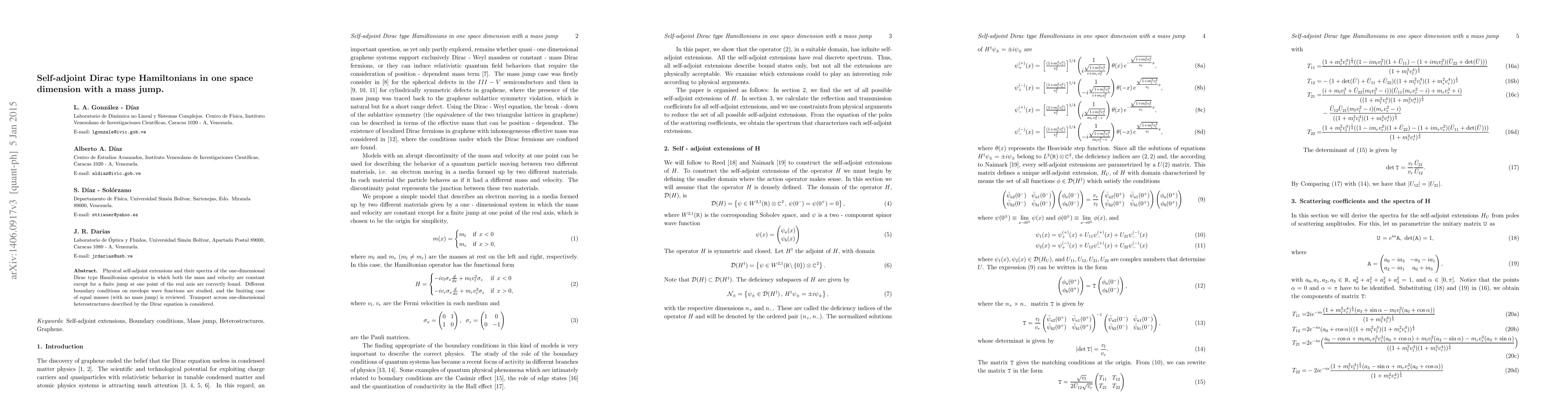 Researchers developed self-adjoint extensions of a Dirac type Hamiltonian operator with a mass jump in one dimension, finding physical solutions for transport across heterostructures.