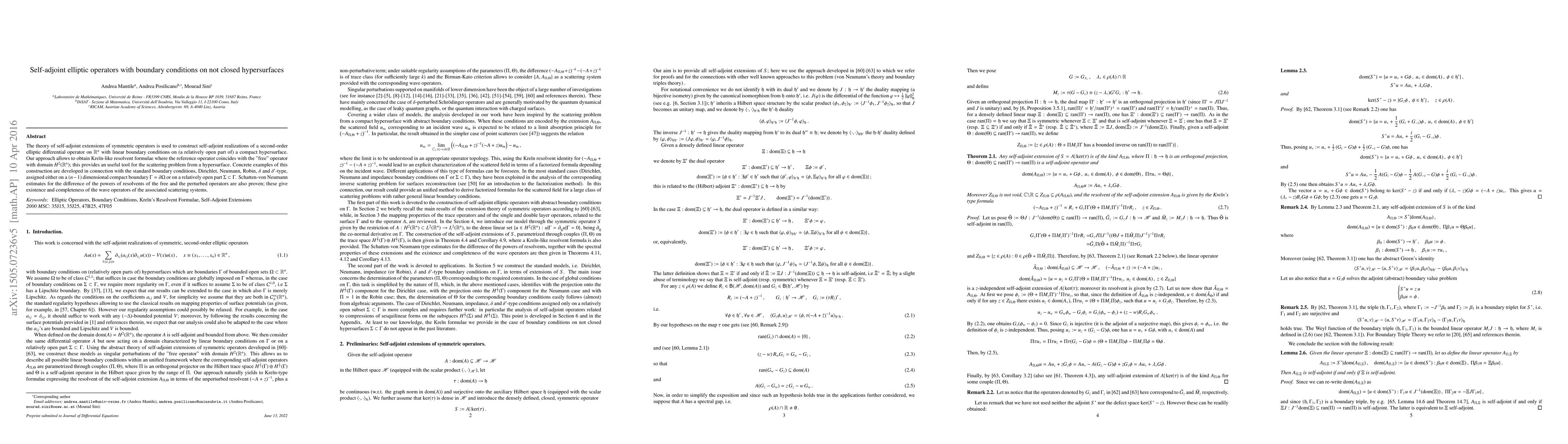 This paper constructs self-adjoint elliptic operators on $\mathbb{R}^{n}$ with boundary conditions on non-closed hypersurfaces, using self-adjoint extension theory, and provides Krein-like resolvent formulas for scattering problems. It also proves Schatten-von Neumann estimates for resolvent differences and establishes the existence of wave operators for the scattering systems.