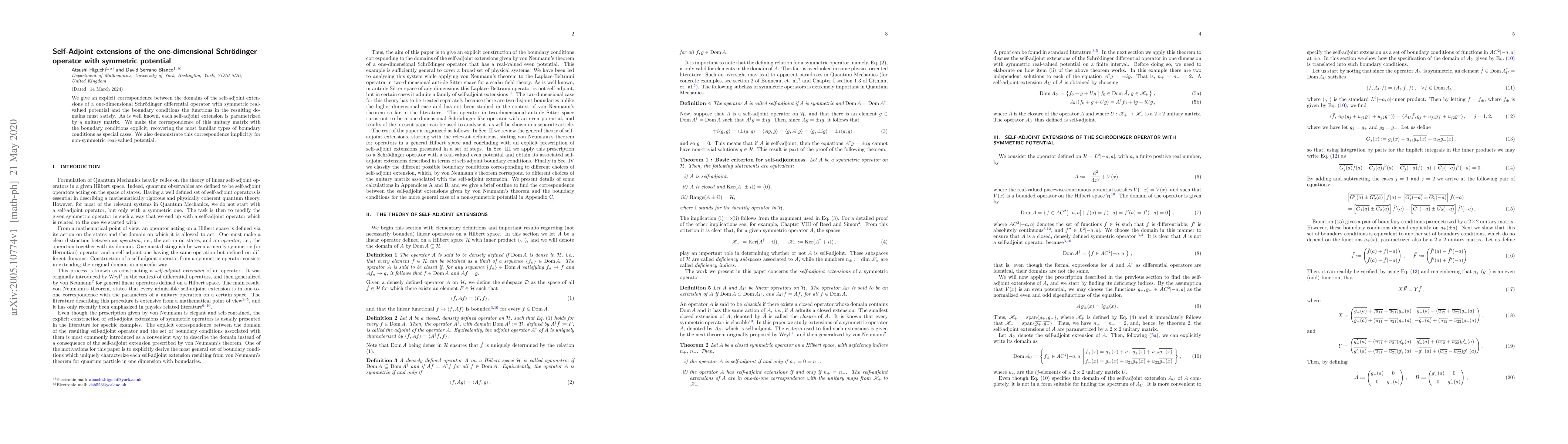 This paper establishes a clear relationship between the self-adjoint extensions of a one-dimensional Schrödinger operator with symmetric potential and the boundary conditions these extensions must satisfy, explicitly linking the unitary matrix parametrization to specific boundary conditions. It also extends this correspondence implicitly to non-symmetric potentials.