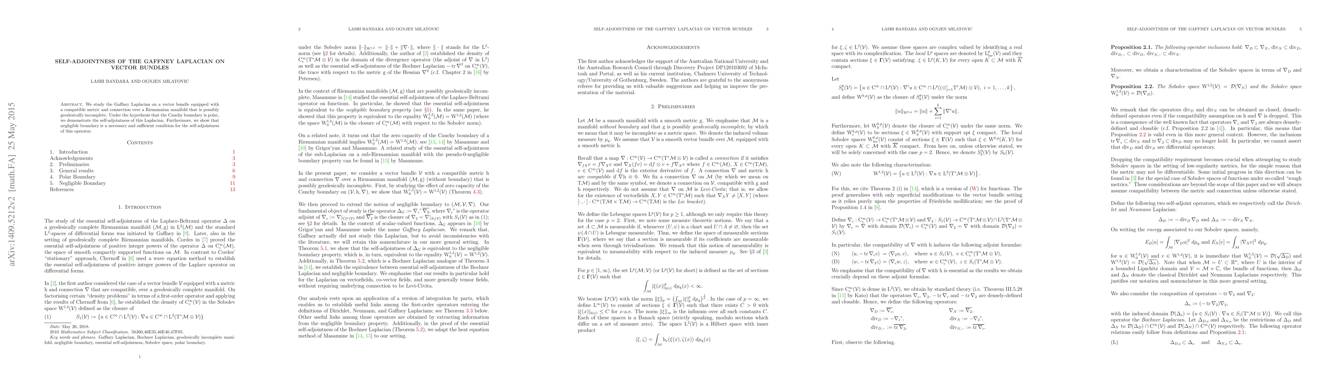We study the Gaffney Laplacian on a vector bundle equipped with a compatible metric and connection over a Riemannian manifold that is possibly geodesically incomplete. Under the hypothesis that the Cauchy boundary is polar, we demonstrate the self-adjointness of this Laplacian. Furthermore, we show that negligible boundary is a necessary and sufficient condition for the self-adjointness of this operator.