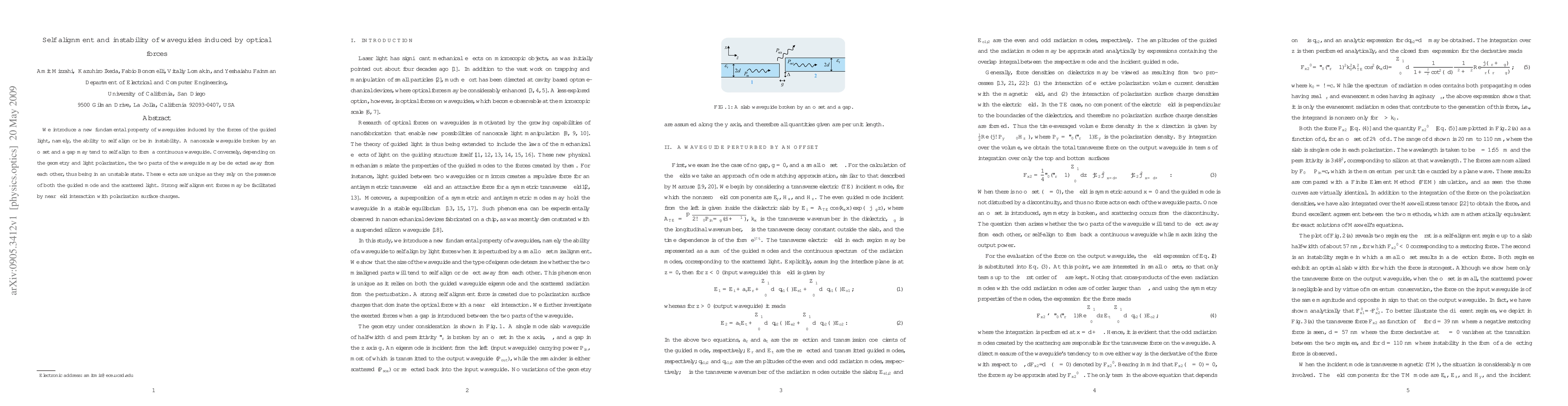 We introduce a new fundamental property of waveguides induced by the forces of the guided light, namely, the ability to self align or be in instability. A nanoscale waveguide broken by an offset and a gap may tend to self align to form a continuous waveguide. Conversely, depending on the geometry and light polarization, the two parts of the waveguide may be deflected away from each other, thus being in an unstable state. These effects are unique as they rely on the presence of both the guided mode and the scattered light. Strong self alignment forces may be facilitated by near field interaction with polarization surface charges.