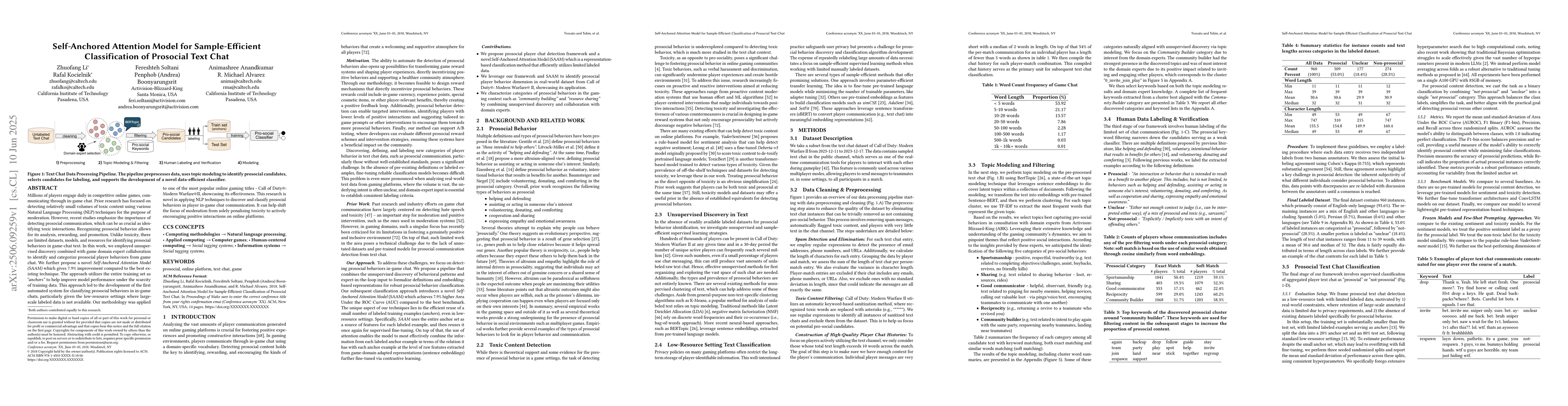 Researchers developed a novel Self-Anchored Attention Model to identify and classify prosocial behaviors in online gaming chat, achieving 7.9% improvement over existing techniques with limited training data.