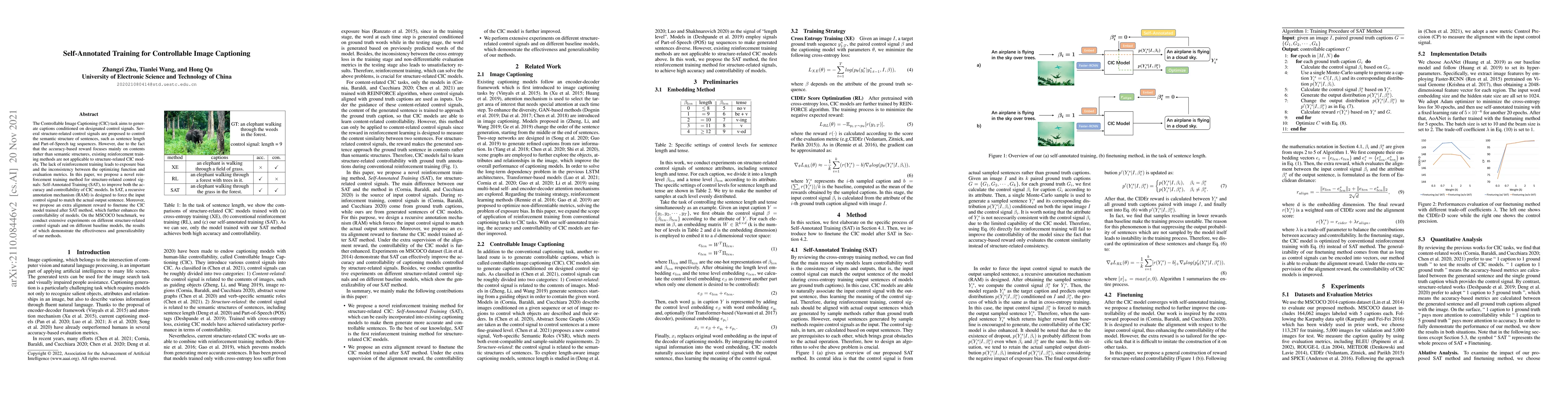 A new training method called Self-Annotated Training (SAT) is proposed to control image captions based on specific structures, improving both accuracy and controllability.