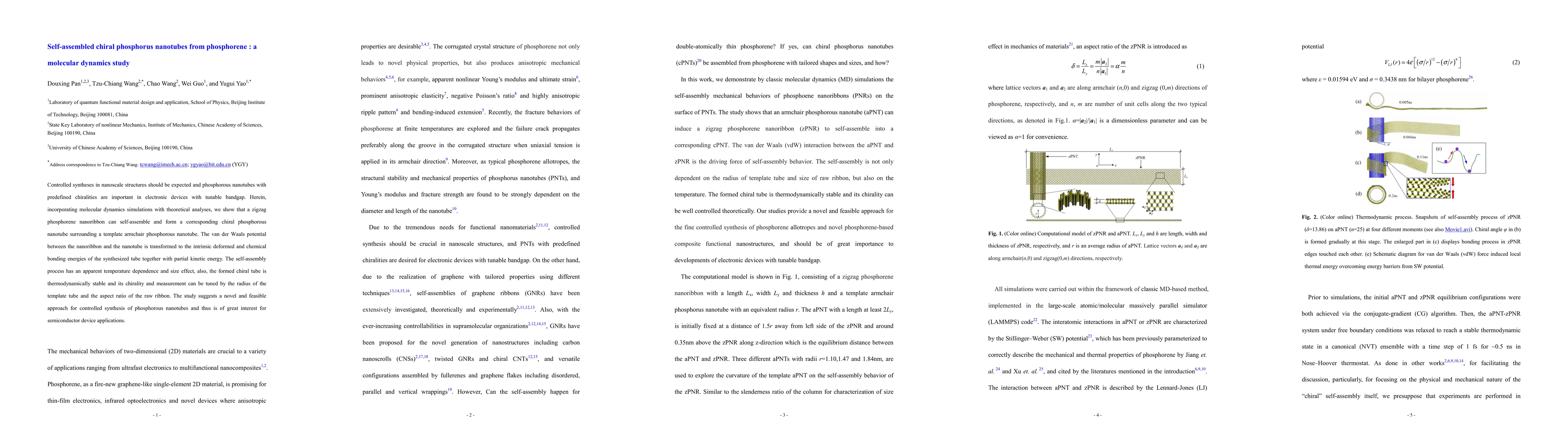 Controlled syntheses in nanoscale structures should be expected and phosphorous nanotubes with predefined chiralities are important in electronic devices with tunable bandgap. Here, incorporating molecular dynamics simulations with theoretical analyses, we show that a zigzag phosphorene nanoribbon can self-assemble and form a corresponding chiral phosphorous nanotube surrounding a template armchair phosphorous nanotube. The van der Waals potential between the nanoribbon and the nanotube is transformed to the intrinsic deformed and chemical bonding energies of the synthesized tube together with partial kinetic energy. The self-assembly process has an apparent temperature dependence and size effect and the formed chiral tube is thermodynamically stable. Also, the chirality and measurement can be tuned by the radius of template tube and the aspect ratio of raw ribbon. The study suggests a novel and feasible approach for controlled synthesis of phosphorous nanotubes and thus is of great interest for semiconductor device applications.