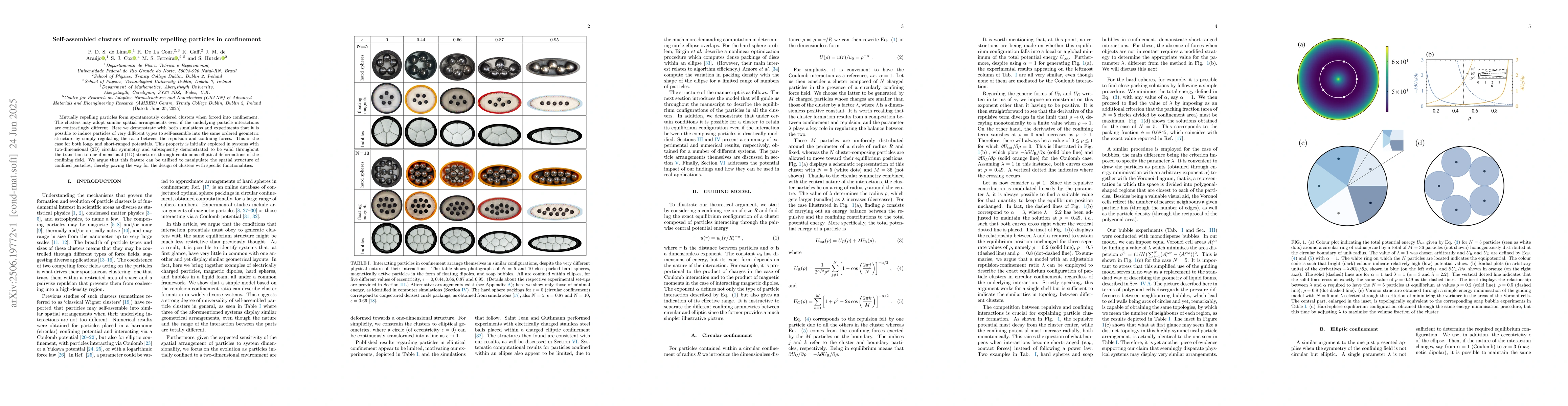 Mutually repelling particles form spontaneously ordered clusters when forced into confinement. The clusters may adopt similar spatial arrangements even if the underlying particle interactions are contrastingly different. Here we demonstrate with both simulations and experiments that it is possible to induce particles of very different types to self-assemble into the same ordered geometric structure by simply regulating the ratio between the repulsion and confining forces. This is the case for both long- and short-ranged potentials. This property is initially explored in systems with two-dimensional (2D) circular symmetry and subsequently demonstrated to be valid throughout the transition to one-dimensional (1D) structures through continuous elliptical deformations of the confining field. We argue that this feature can be utilized to manipulate the spatial structure of confined particles, thereby paving the way for the design of clusters with specific functionalities.