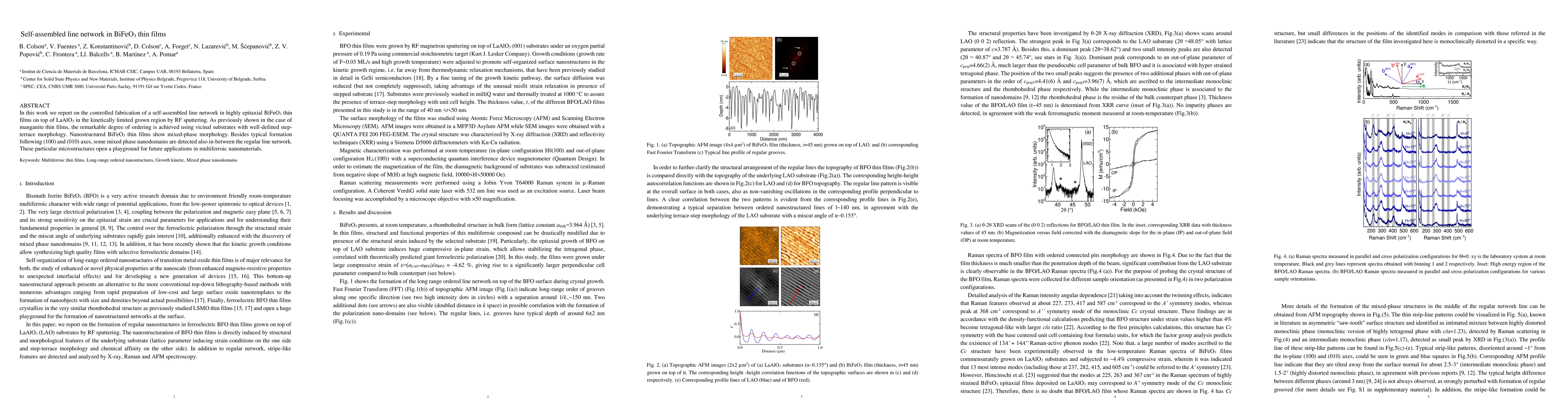 This study reports the fabrication of a self-assembled line network in epitaxial BiFeO3 thin films using RF sputtering on LaAlO3 substrates, achieving remarkable ordering via vicinal substrates. The nanostructured films display mixed-phase morphologies with potential applications in multiferroic nanomaterials.