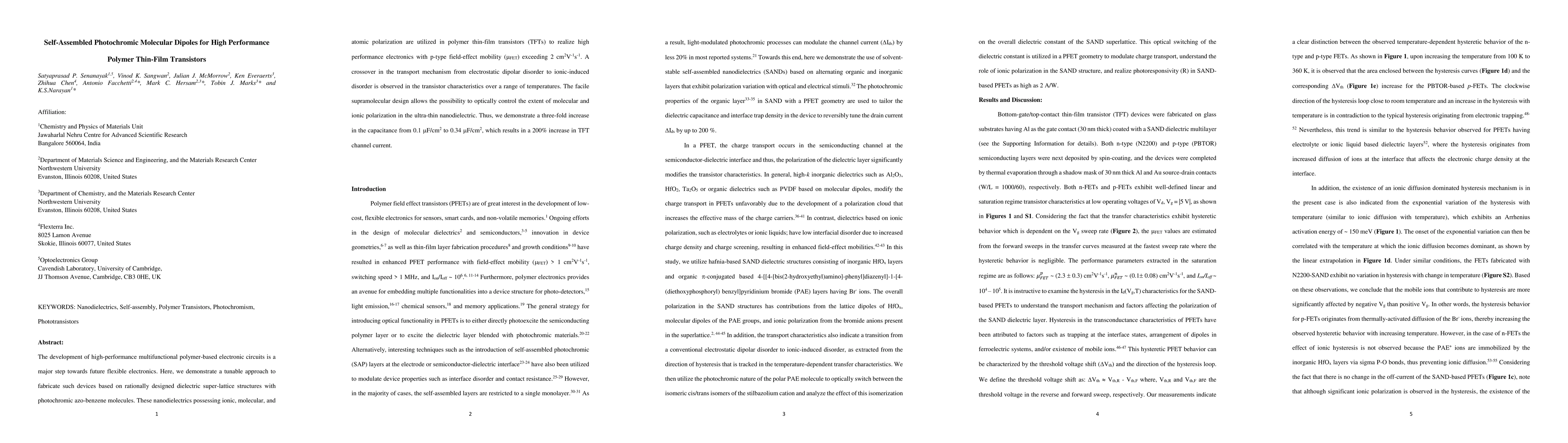 This paper presents a method for creating high-performance polymer thin-film transistors using self-assembled photochromic molecular dipoles, achieving p-type field-effect mobility over 2 cm^2/(V.s). The supramolecular design enables optical control over the polarization, leading to a three-fold increase in capacitance and a 200% increase in TFT channel current.