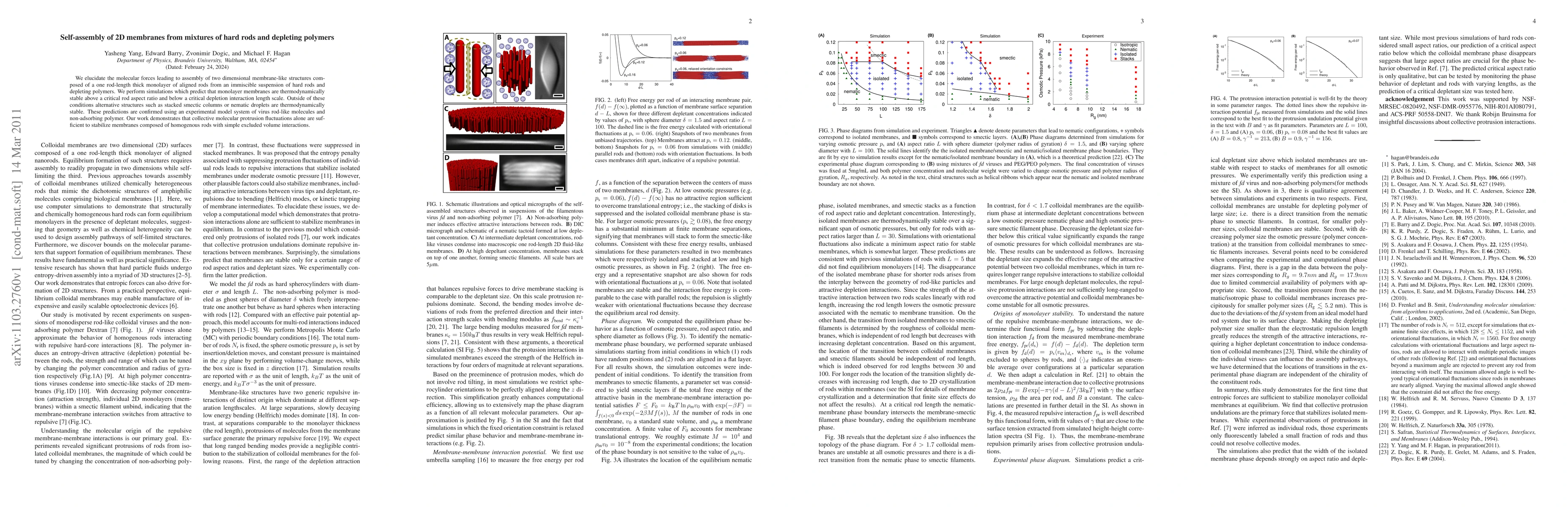 This research elucidates the molecular forces enabling the formation of two-dimensional membrane structures from mixtures of hard rods and depleting polymers, revealing thermodynamic stability conditions for monolayers. Simulations and experiments with virus molecules and non-adsorbing polymers confirm that these membranes are stable under specific conditions, highlighting the role of molecular protrusion fluctuations.