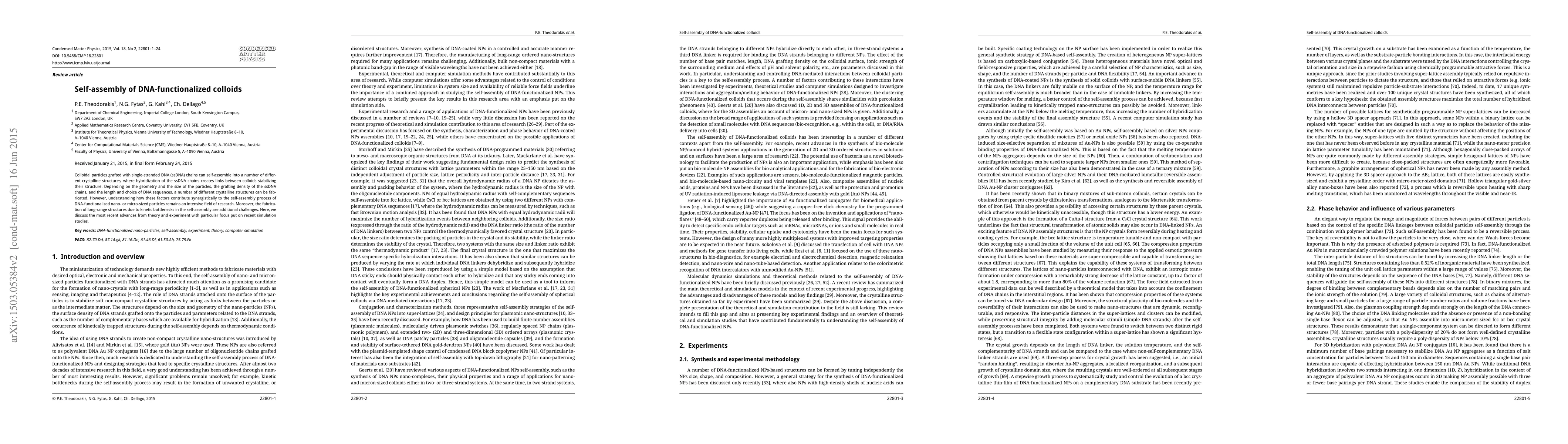 This paper explores the self-assembly of colloidal particles functionalized with single-stranded DNA, detailing how DNA hybridization stabilizes various crystalline structures. It highlights the ongoing research into how particle geometry, DNA grafting density, and sequence length influence these assemblies, while also addressing challenges in creating long-range structures due to kinetic bottlenecks.