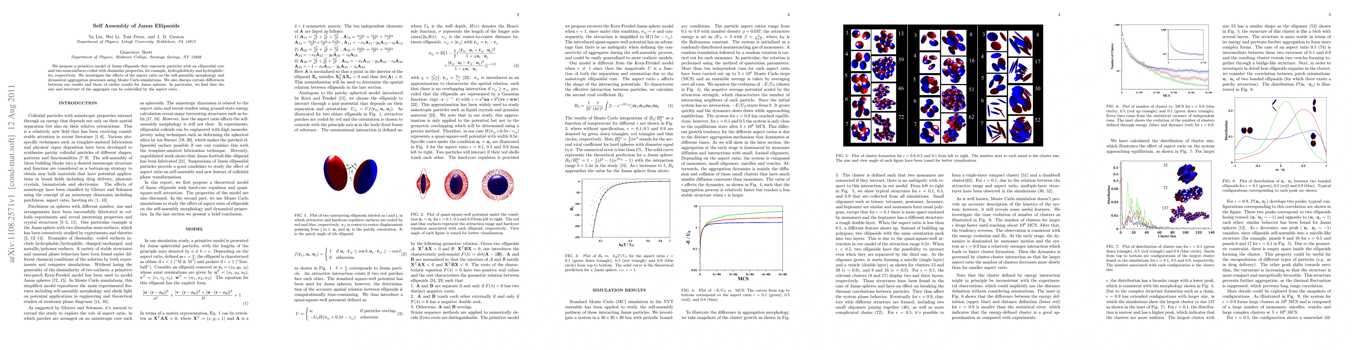 A simple model is proposed to study the self-assembly of Janus ellipsoids.