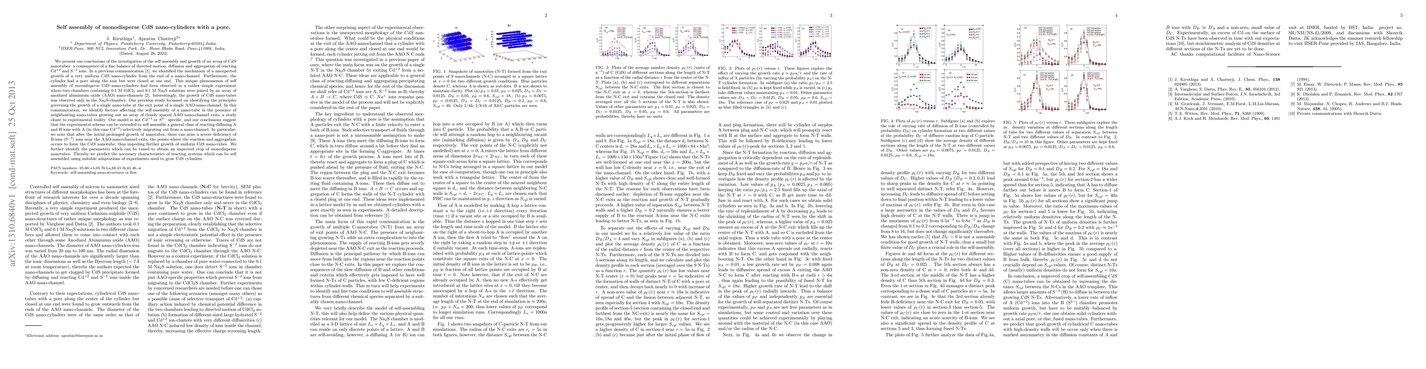 This paper investigates the self-assembly of monodisperse CdS nano-cylinders with pores, revealing the mechanisms behind their growth from anodized aluminum oxide nano-channels. The study identifies factors affecting the assembly process and predicts necessary characteristics for successful self-assembly of similar nanostructures.