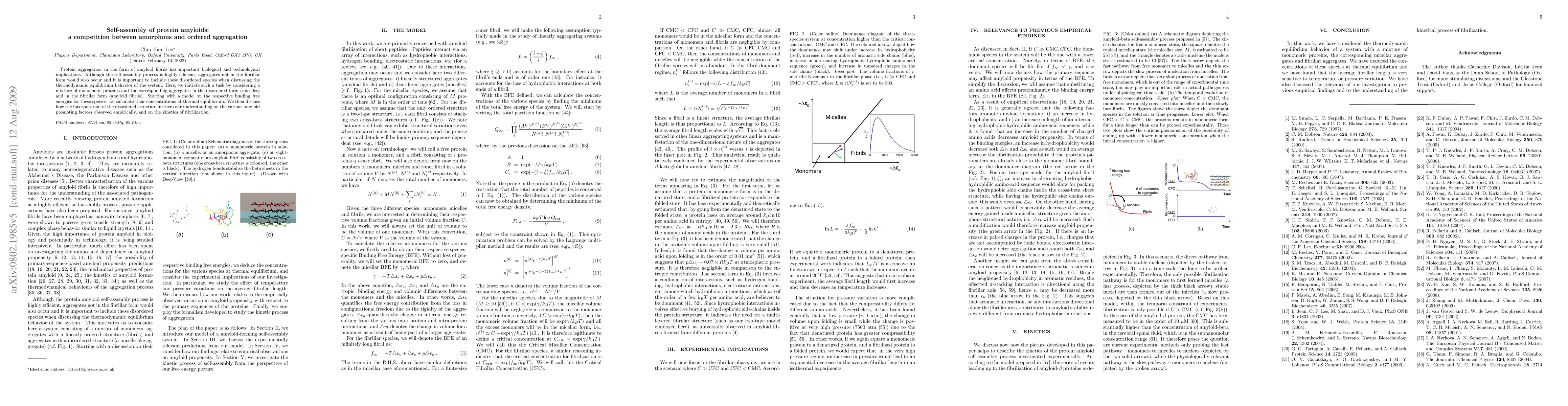 Protein aggregation in the form of amyloid fibrils has important biological and technological implications. Although the self-assembly process is highly efficient, aggregates not in the fibrillar form would also occur and it is important to include these disordered species when discussing the thermodynamic equilibrium behavior of the system. Here, we initiate such a task by considering a mixture of monomeric proteins and the corresponding aggregates in the disordered form (micelles) and in the fibrillar form (amyloid fibrils). Starting with a model on the respective binding free energies for these species, we calculate their concentrations at thermal equilibrium. We then discuss how the incorporation of the disordered structure furthers our understanding on the various amyloid promoting factors observed empirically, and on the kinetics of fibrilization.