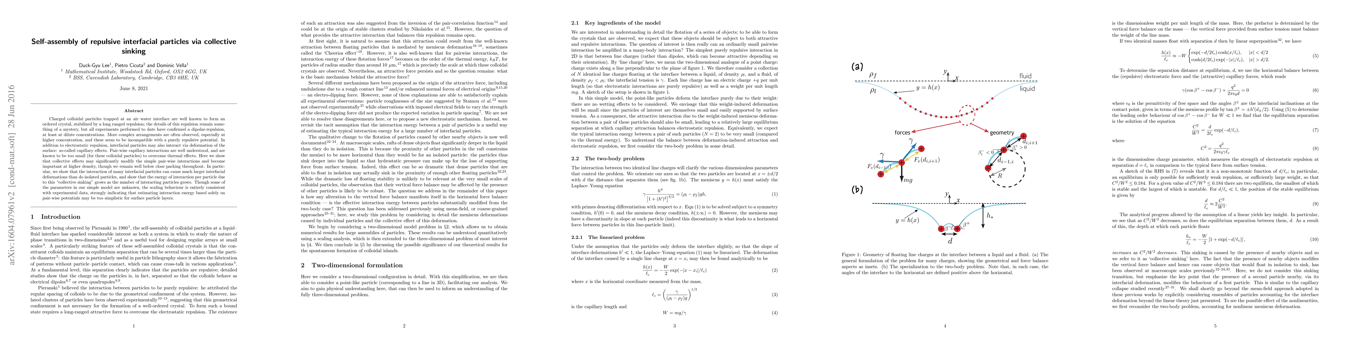 Researchers found that when charged particles are trapped at an air-water interface, collective sinking can significantly modify interactions, leading to larger deformations and increased energy per particle than isolated particles, challenging the simplicity of pair-wise potentials.