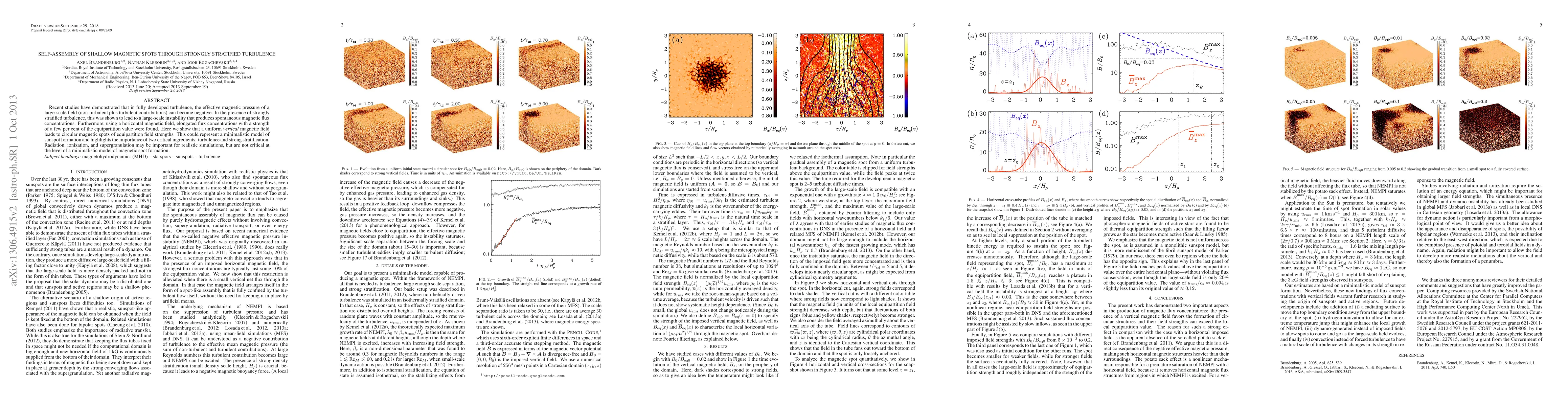 Researchers found that circular magnetic spots can form through strongly stratified turbulence, offering a simplified model for sunspot formation. These spots have magnetic field strengths comparable to the equipartition value.