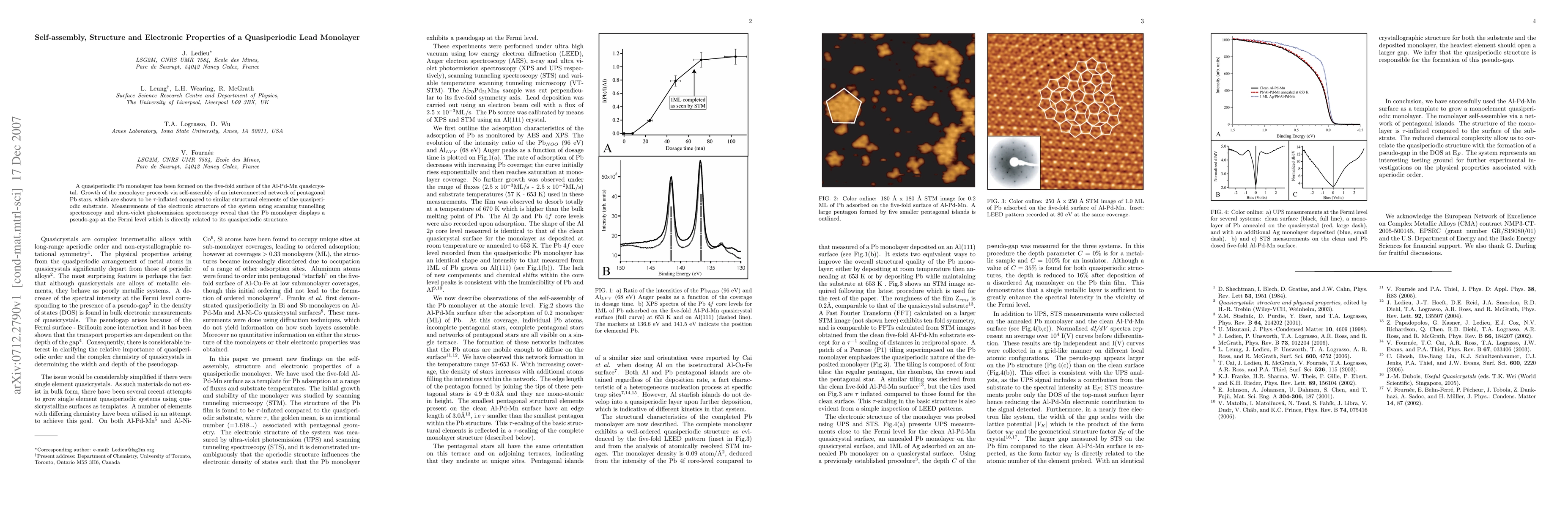 A quasiperiodic lead monolayer self-assembles on the Al-Pd-Mn quasicrystal surface, forming pentagonal Pb stars. The electronic structure exhibits a pseudo-gap at the Fermi level due to its quasiperiodic arrangement, as revealed by scanning tunnelling and photoemission spectroscopy.