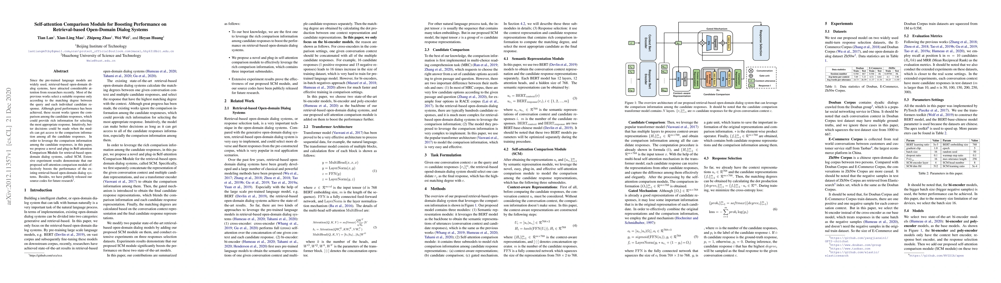 A new module called SCM is proposed to enhance retrieval-based open-domain dialog systems by leveraging comparison information among candidate responses. It boosts performance with extensive experiment results.