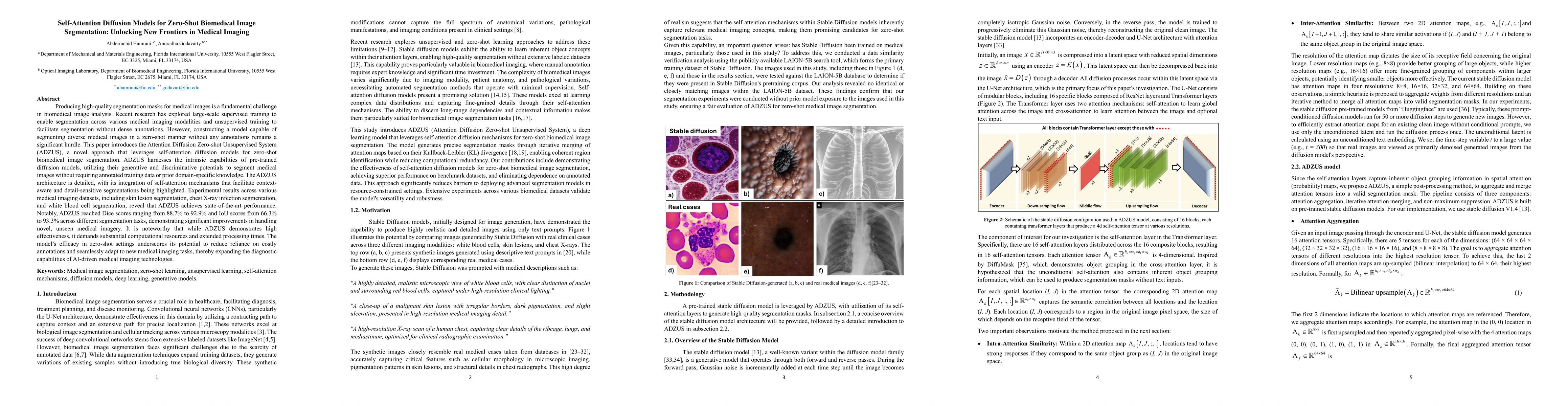 The research introduces Attention Diffusion Zero-shot Unsupervised System (ADZUS), a novel approach leveraging self-attention diffusion models for zero-shot biomedical image segmentation. ADZUS utilizes pre-trained diffusion models, integrating self-attention mechanisms to segment medical images without annotated training data or domain-specific knowledge.