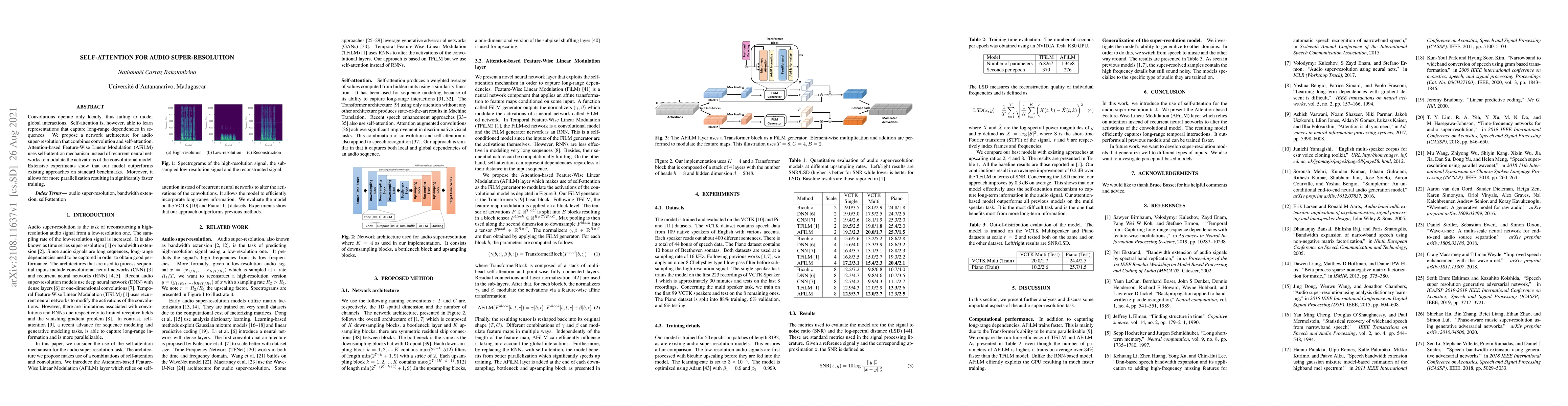 This research introduces a novel audio super-resolution network architecture that merges convolution and self-attention, overcoming convolution's local interaction limitation. The Attention-based Feature-Wise Linear Modulation (AFiLM) outperforms traditional methods, demonstrating superior results on benchmarks and faster training due to increased parallelization.