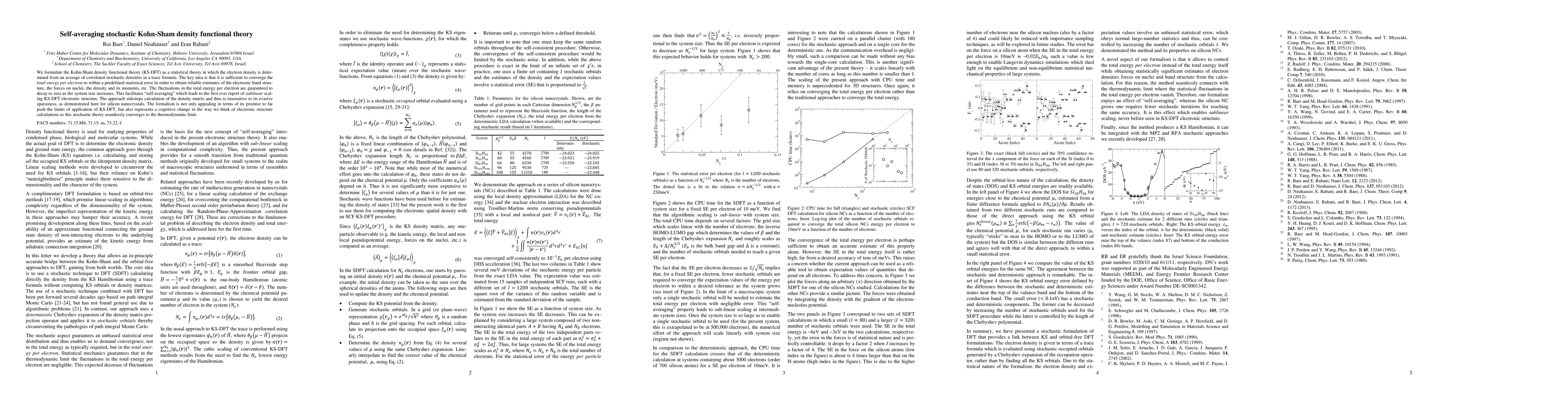 This paper introduces a stochastic Kohn-Sham density functional theory (KS-DFT) that converges total energy per electron to yield reliable electronic structure estimates, achieving sublinear scaling. It sidesteps the density matrix calculation, thus offering a new perspective on electronic structure calculations.