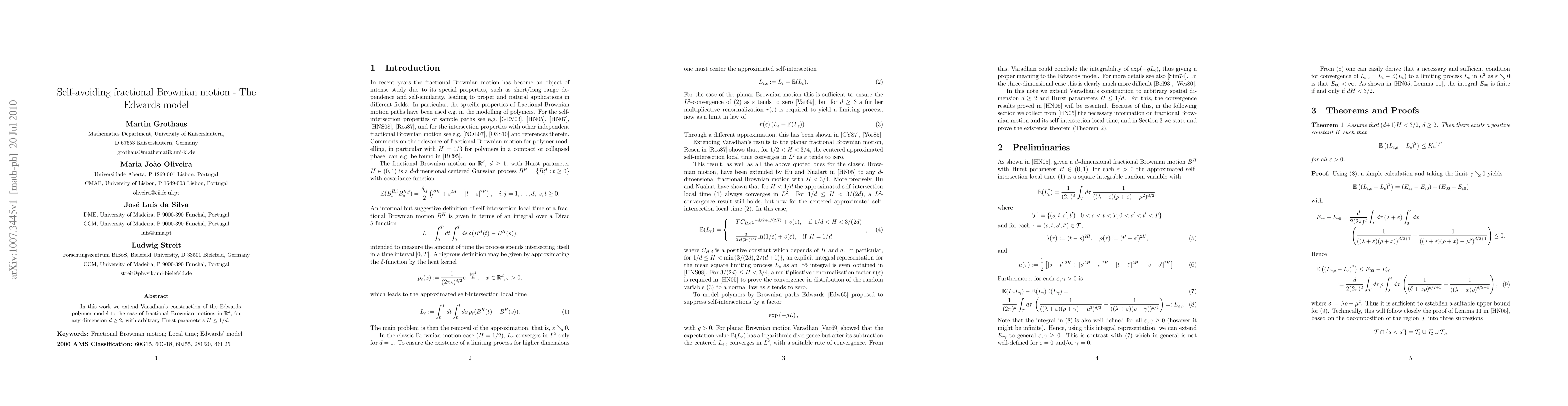 This paper extends Varadhan's construction of the Edwards polymer model to fractional Brownian motions in $\R^d$ for any dimension $d\geq 2$, allowing for arbitrary Hurst parameters $H\leq 1/d$. The focus is on self-avoiding walks in this fractional Brownian motion framework.
