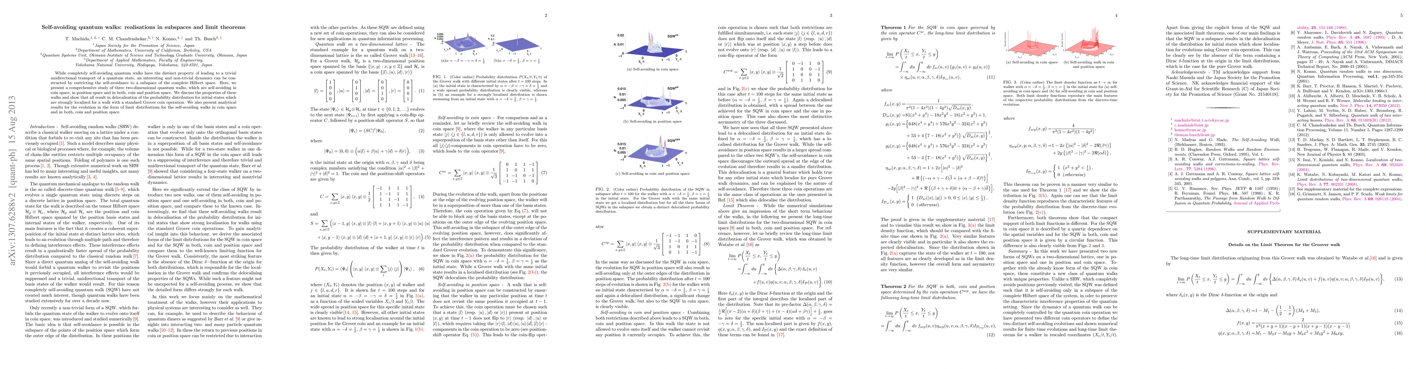 This paper investigates self-avoiding quantum walks in various subspaces, demonstrating that restricting self-avoidance can lead to non-trivial dynamics. It presents three types of two-dimensional self-avoiding quantum walks, showing their delocalisation properties and deriving limit distributions for their evolution.