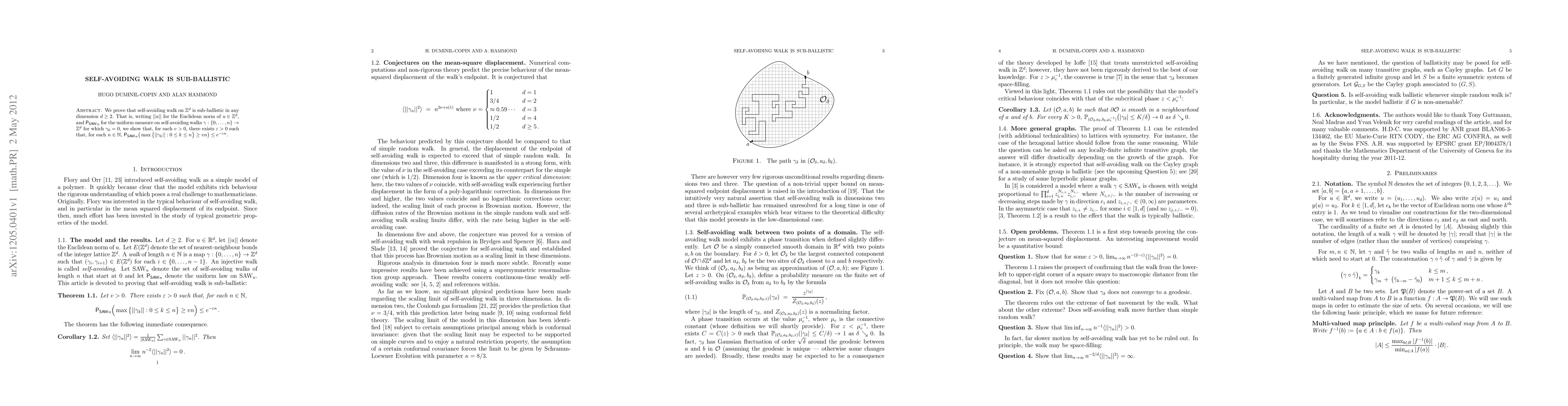 This research proves that self-avoiding walks on Z^d in dimensions d >= 2 are sub-ballistic, meaning their speed of convergence decreases exponentially with distance.