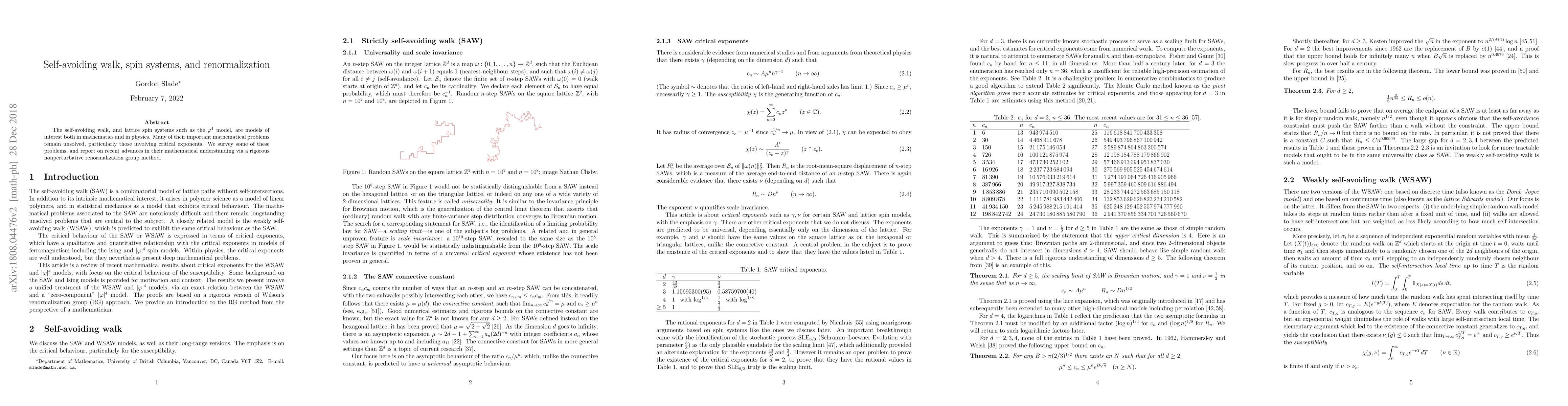 The self-avoiding walk, and lattice spin systems such as the $\varphi^4$ model, are models of interest both in mathematics and in physics. Many of their important mathematical problems remain unsolved, particularly those involving critical exponents. We survey some of these problems, and report on recent advances in their mathematical understanding via a rigorous nonperturbative renormalization group method.