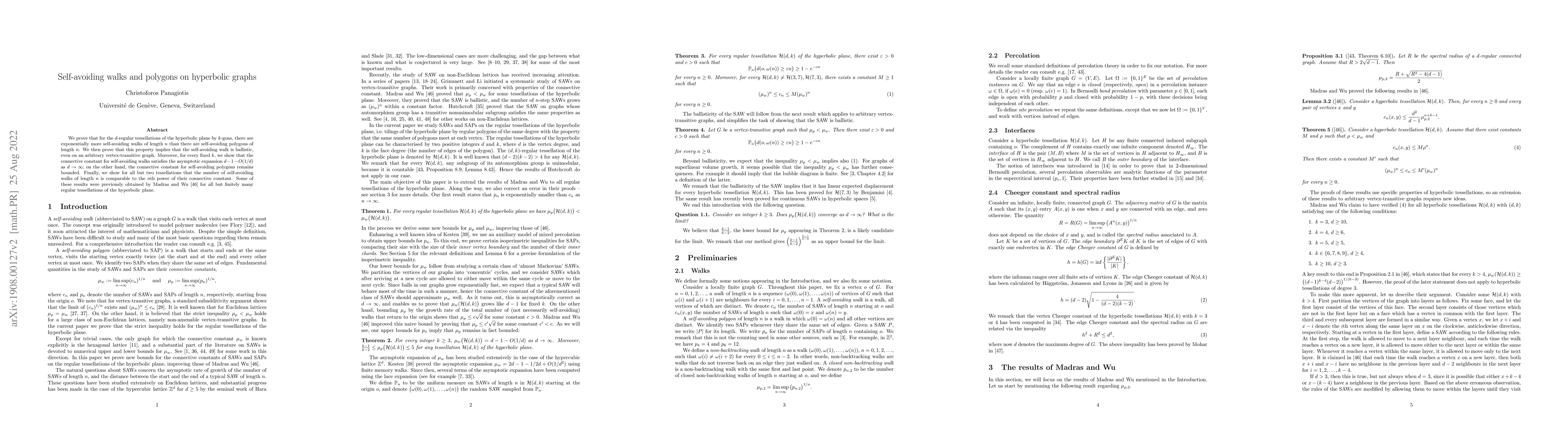 This paper demonstrates that self-avoiding walks on $d$-regular hyperbolic tessellations have exponentially more paths of length $n$ compared to self-avoiding polygons, leading to ballistic behavior. It also establishes the connective constant expansion for self-avoiding walks and compares it with the bounded constant for self-avoiding polygons.